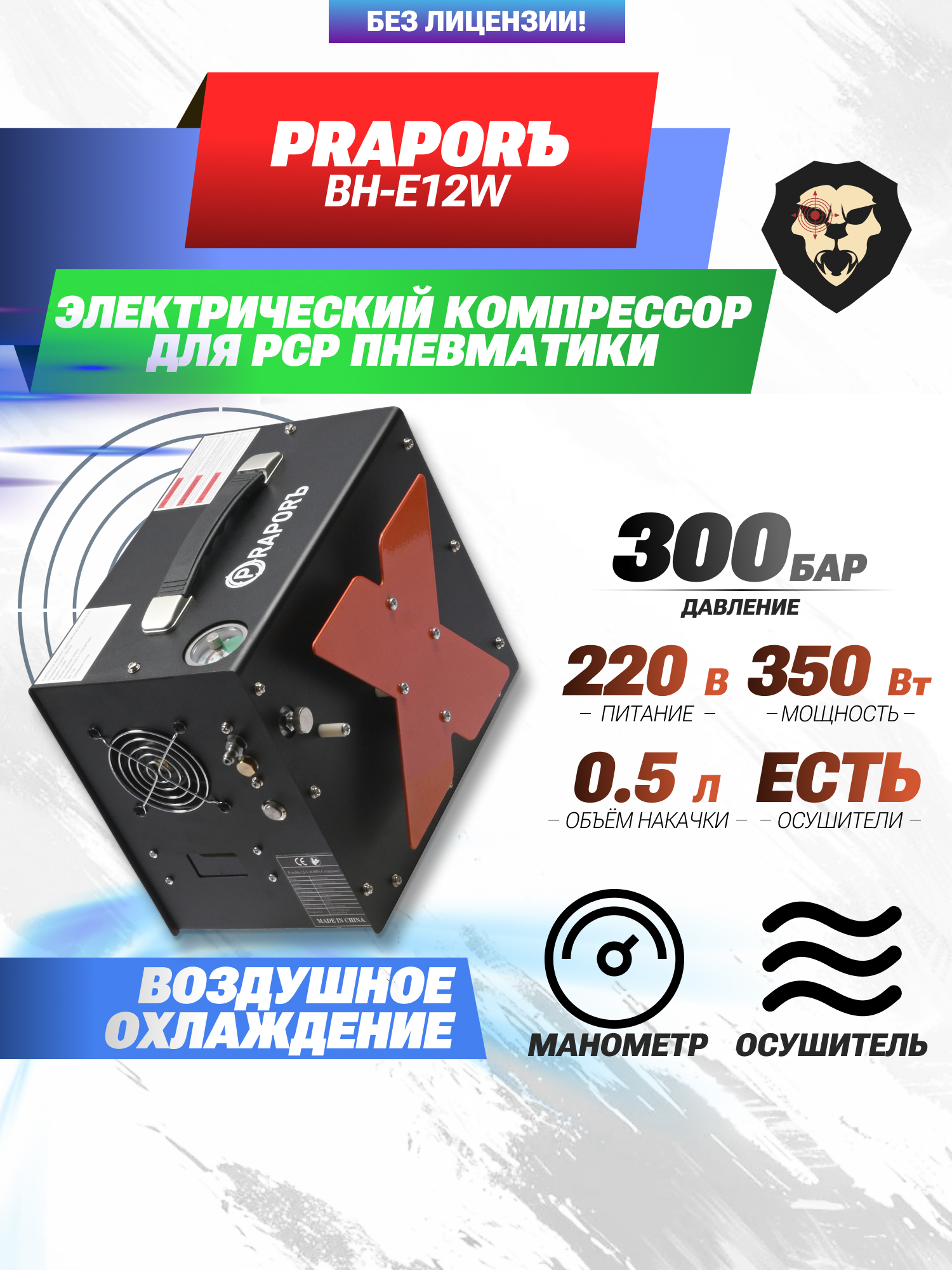 Электрический компрессор PraporЪ BH-E12W (300 Атм, 220В, 12В, для PCP) купить в интернет-магазине Popadiv10.