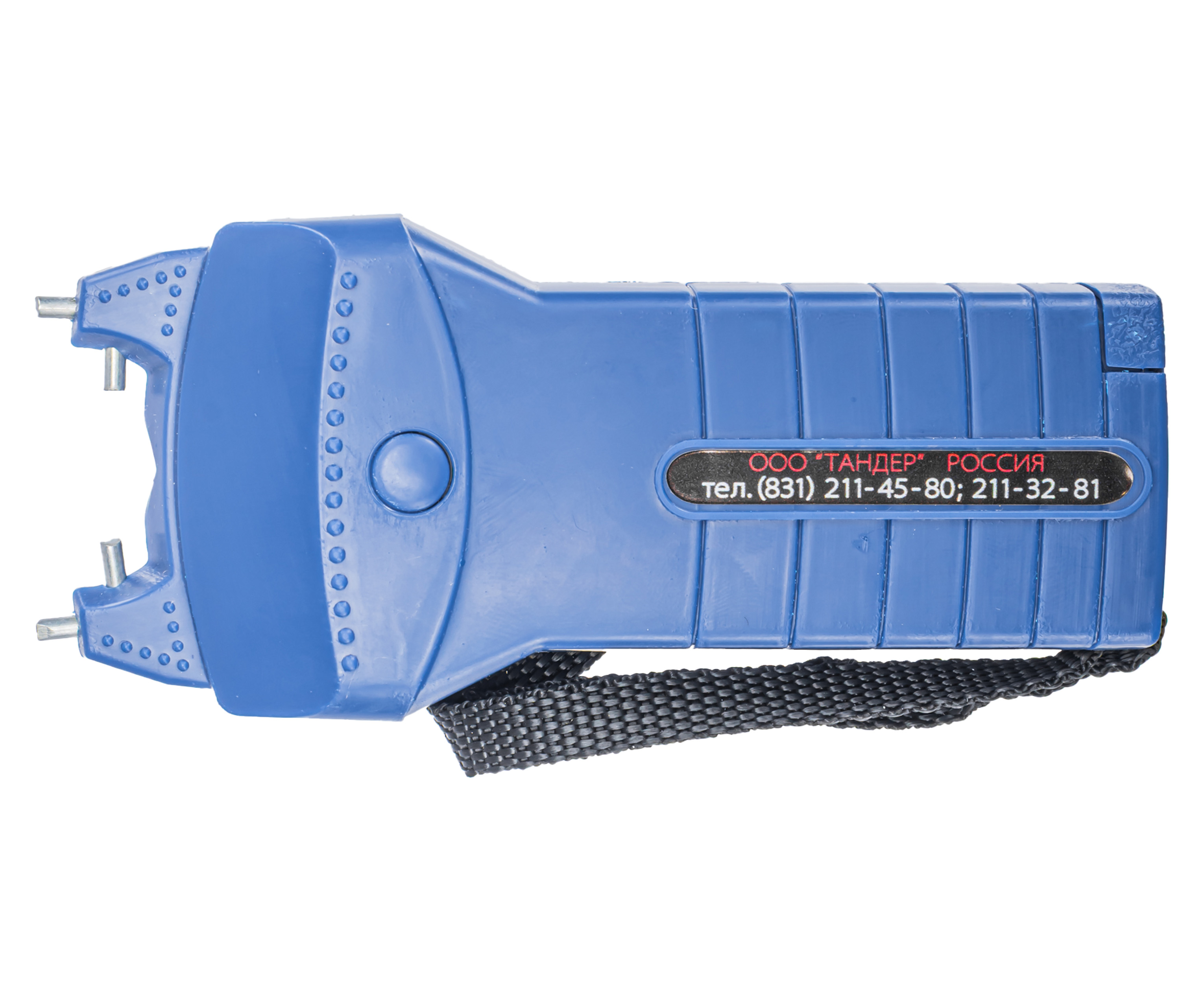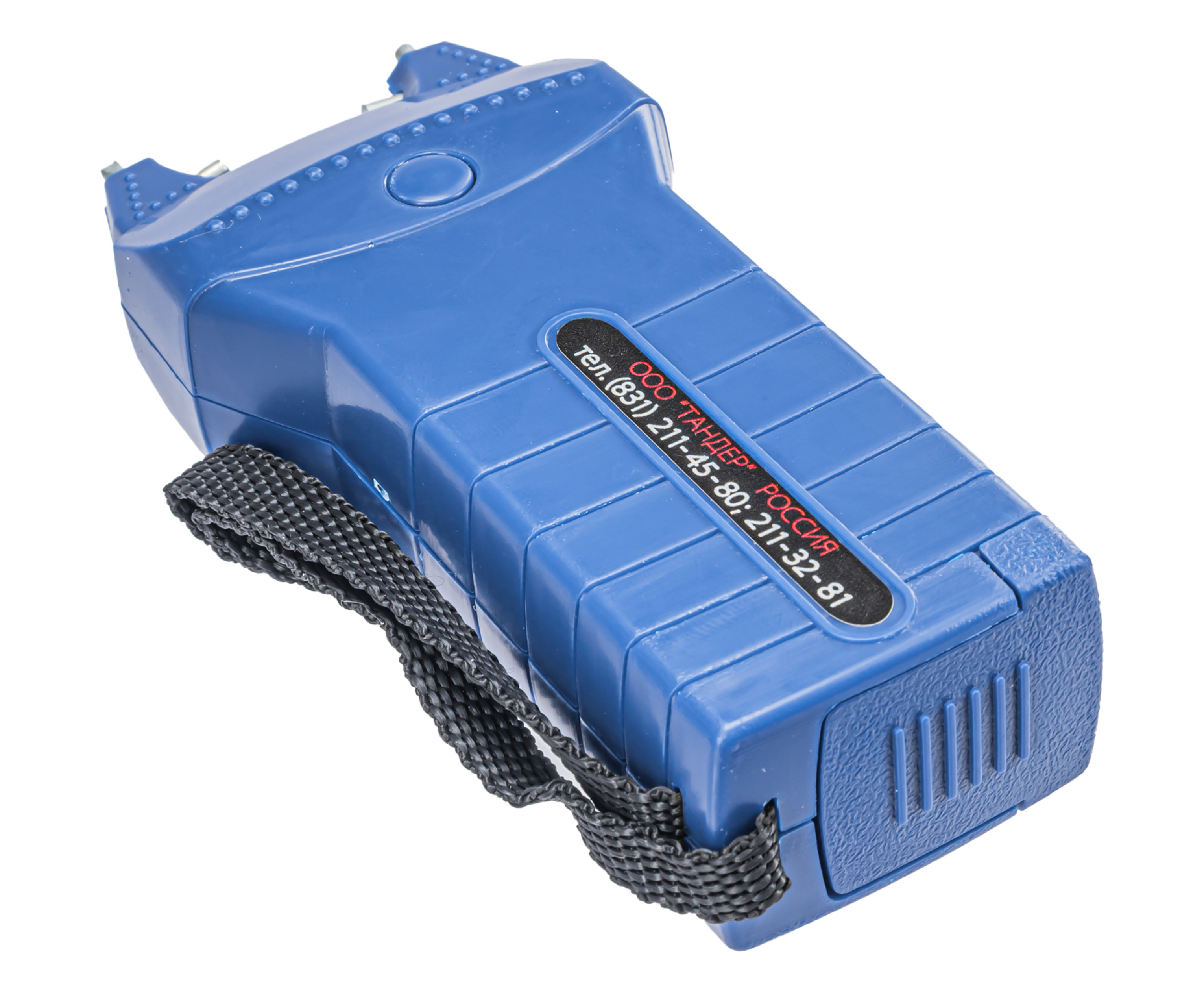 Изделия российского бренда Тандер предусматривают несколько вариаций исполнения - в рассматриваемом случае ЭШУ работает от сменной алкалиновой батарейки. Рекомендуется запитывать прибор Кроной 9V, которая помещается в отсек внутри рукояти под съемной заглушкой. Для подключения задействуются соответствующие клеммы.