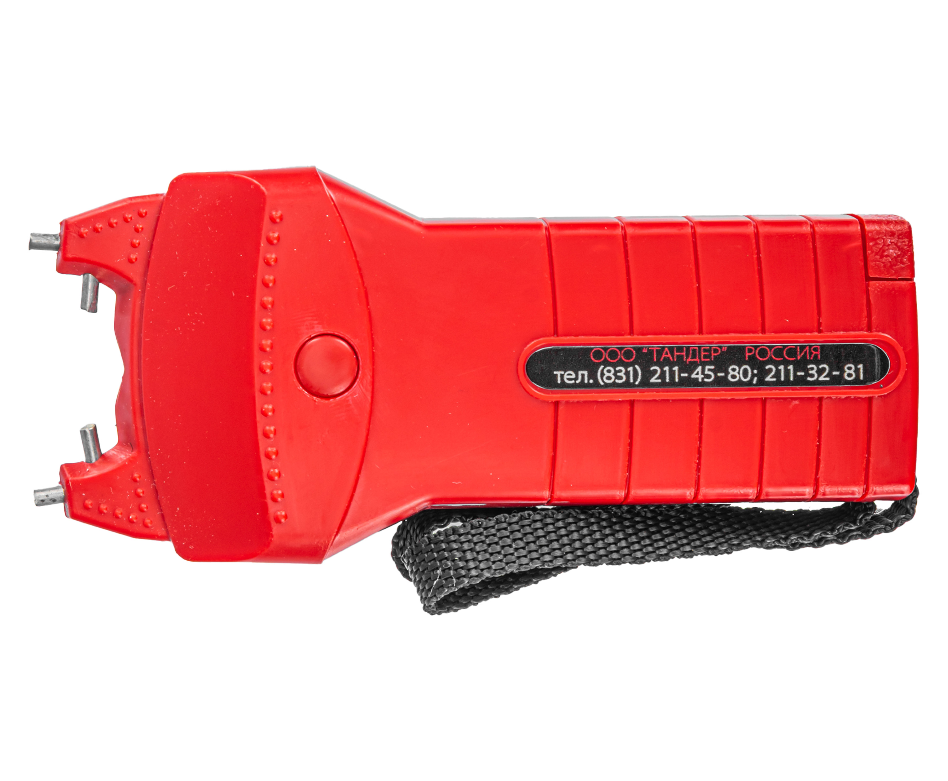 Управление изделием осуществляется посредством кнопки - при отпускании питание пропадет, соответственно можно безопасно прикасаться к контактам. С правой стороны присутствует ползунок предохранителя - для подготовки изделия к использованию рычажок понадобится переместить в левую сторону. Снизу разместили тканевый шнурок, который поможет не потерять отпугиватель Тандер при использовании.