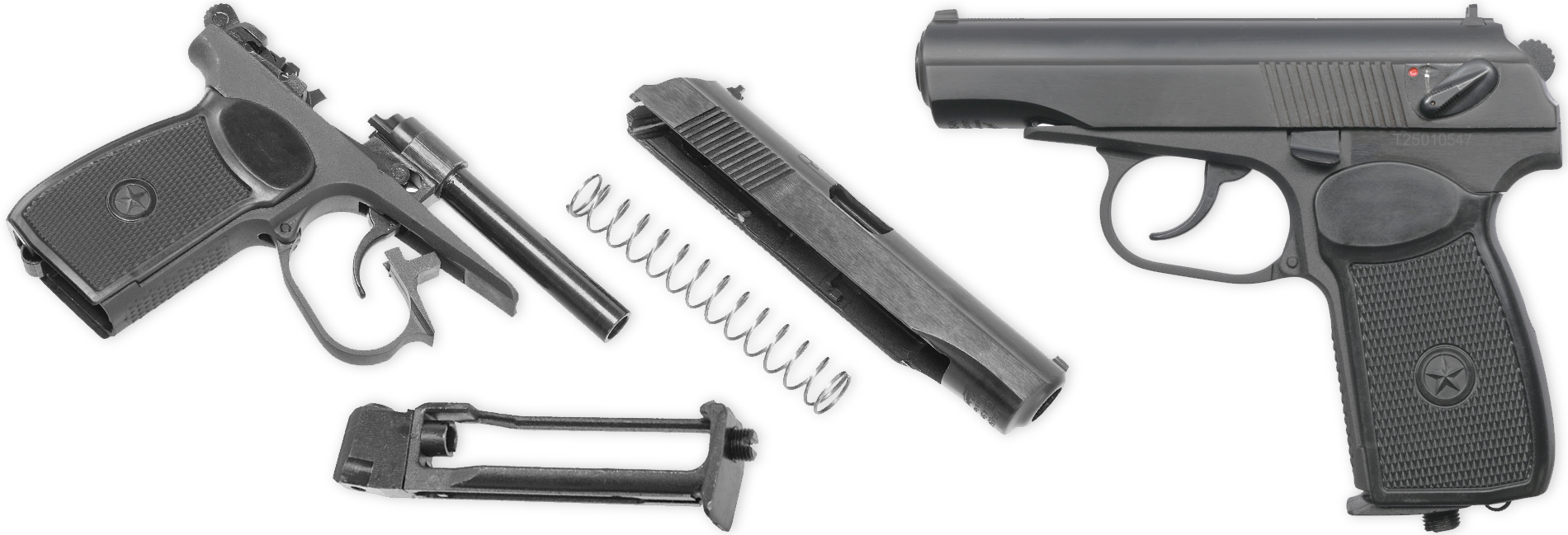 Успех этого экземпляра объясняется просто - в своей сути это и есть пистолет Макарова, конвертированный в пневматику. Для его изготовления используются все те же мощности, что и для старшего брата, за исключением пневматической начинки. В начале выхода завод даже использовал заготовки и боевые пистолеты в целом - таким образом нереализованный «огнестрел» уходил на рынок в демилитаризованном виде во времена, когда это допускал закон.