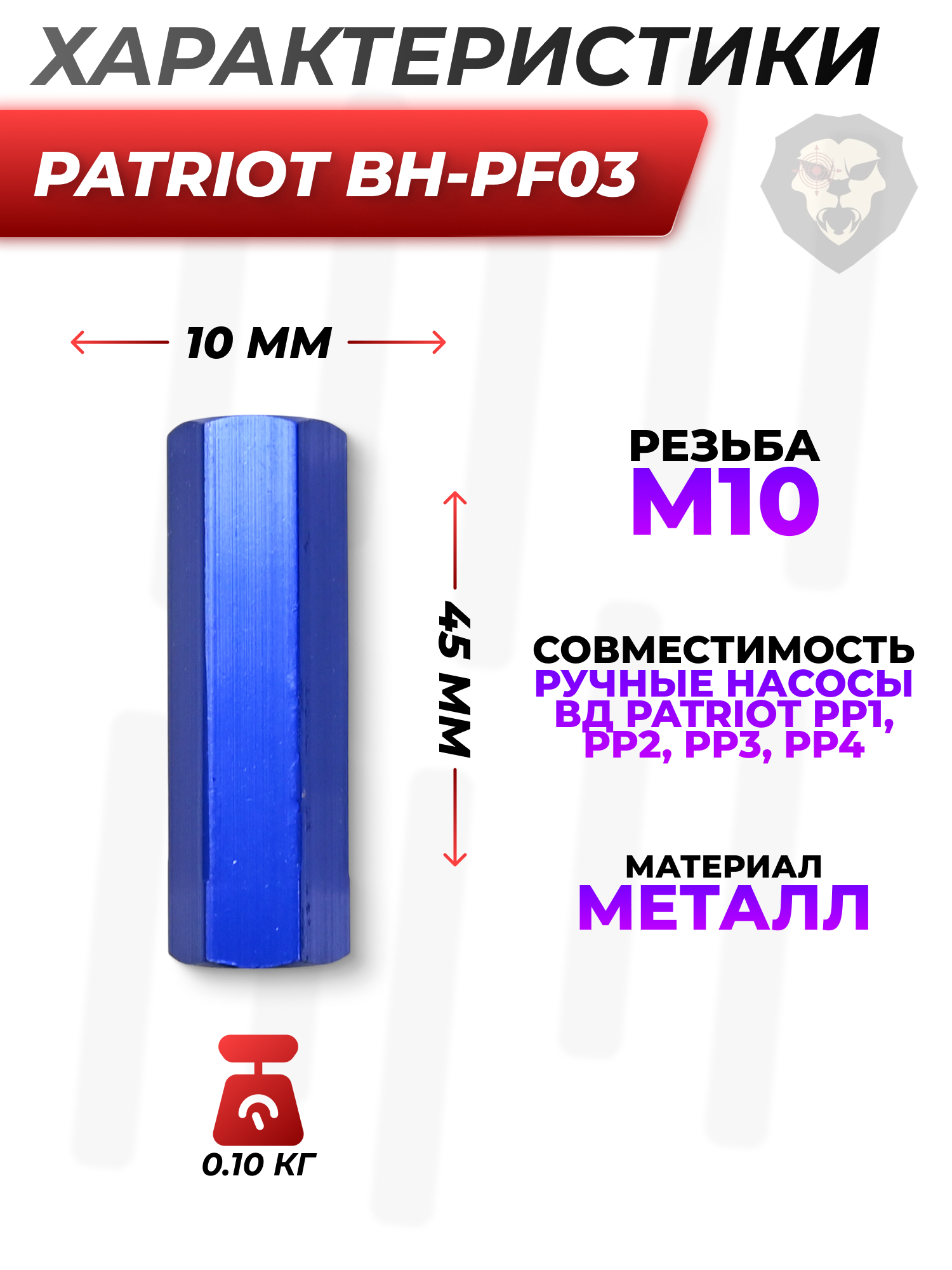 Совместимость | Ручные насосы ВД Patriot PP1, PP2, PP3, PP4 |