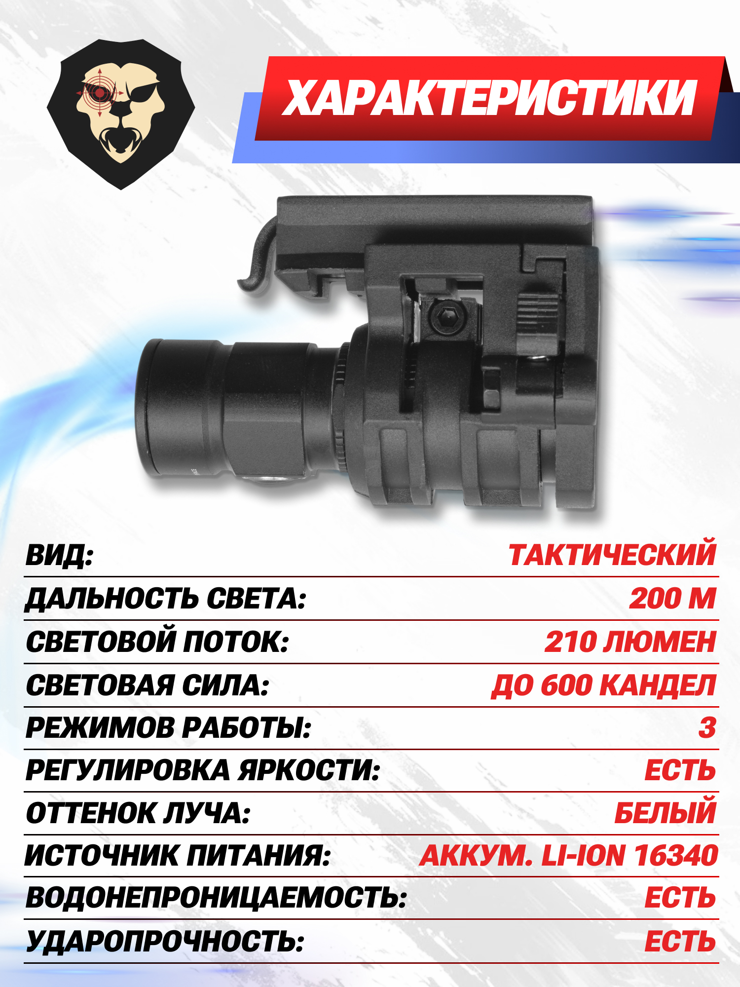Информация о товаре "Фонарь тактический Patriot 8351-Т6 (BH-FL06, 3 режима)" носит ознакомительный характер, и не является публичной офертой, определяемой положениями Статьи 437 Гражданского кодекса Российской Федерации, характеристики, внешний вид, цвет и комплектация могут быть изменены производителем без уведомления.