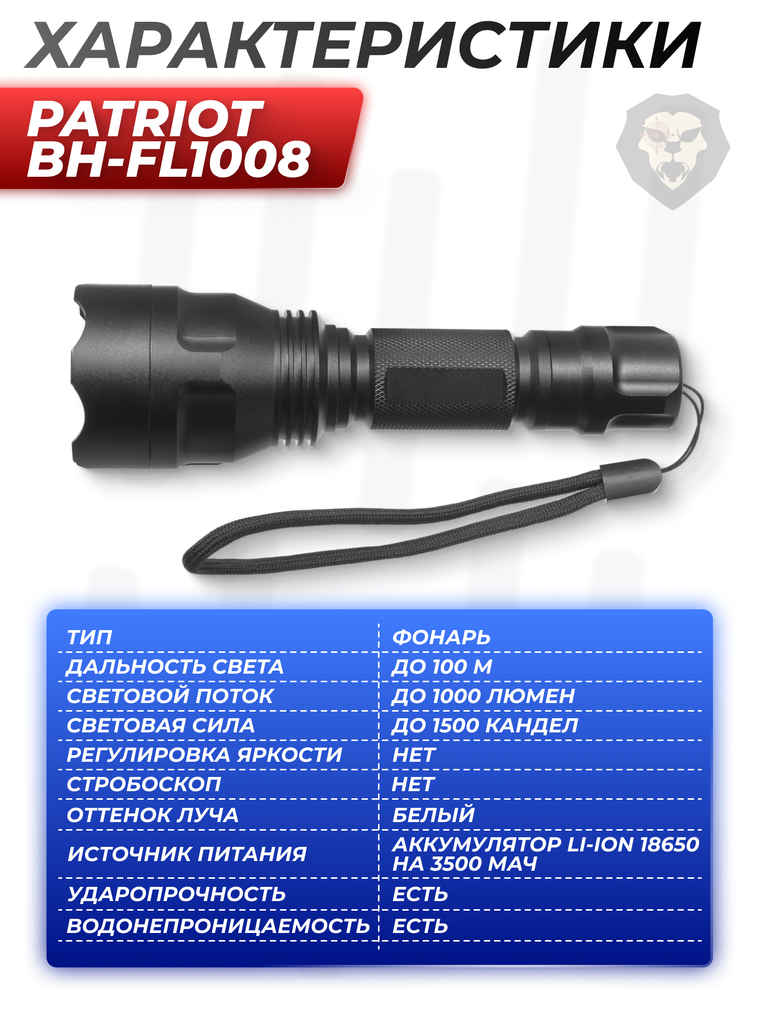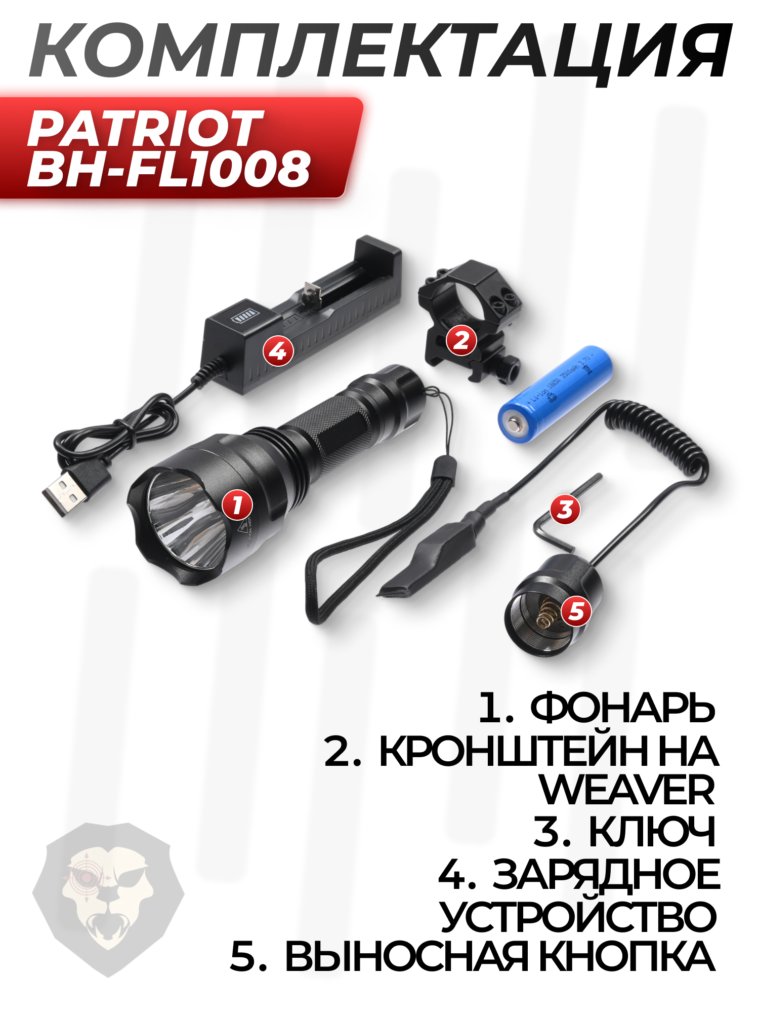 Фонарь тактический Patriot BH-FL1008 (Weaver, выносная кнопка) купить в интернет-магазине Popadiv10.
