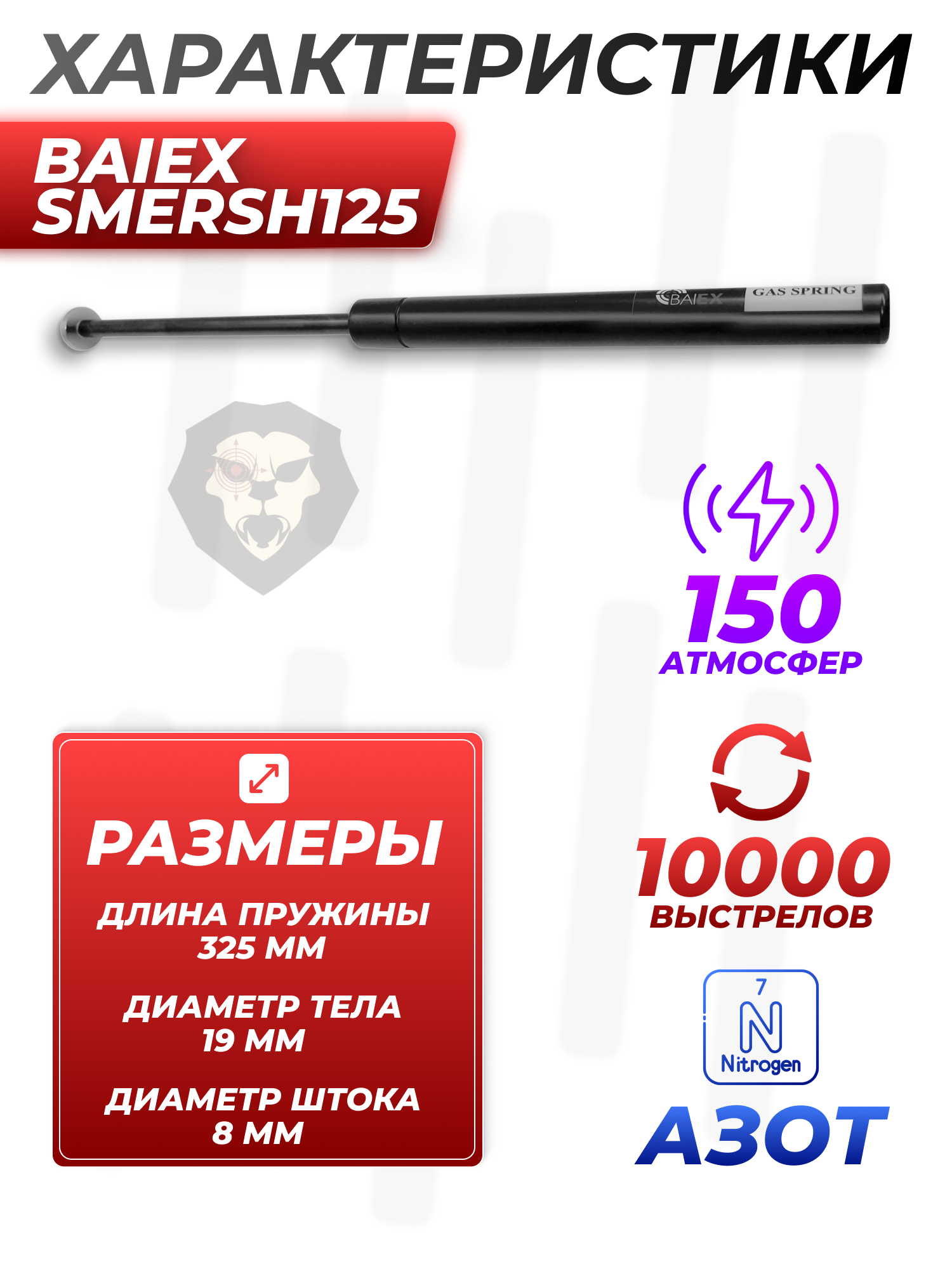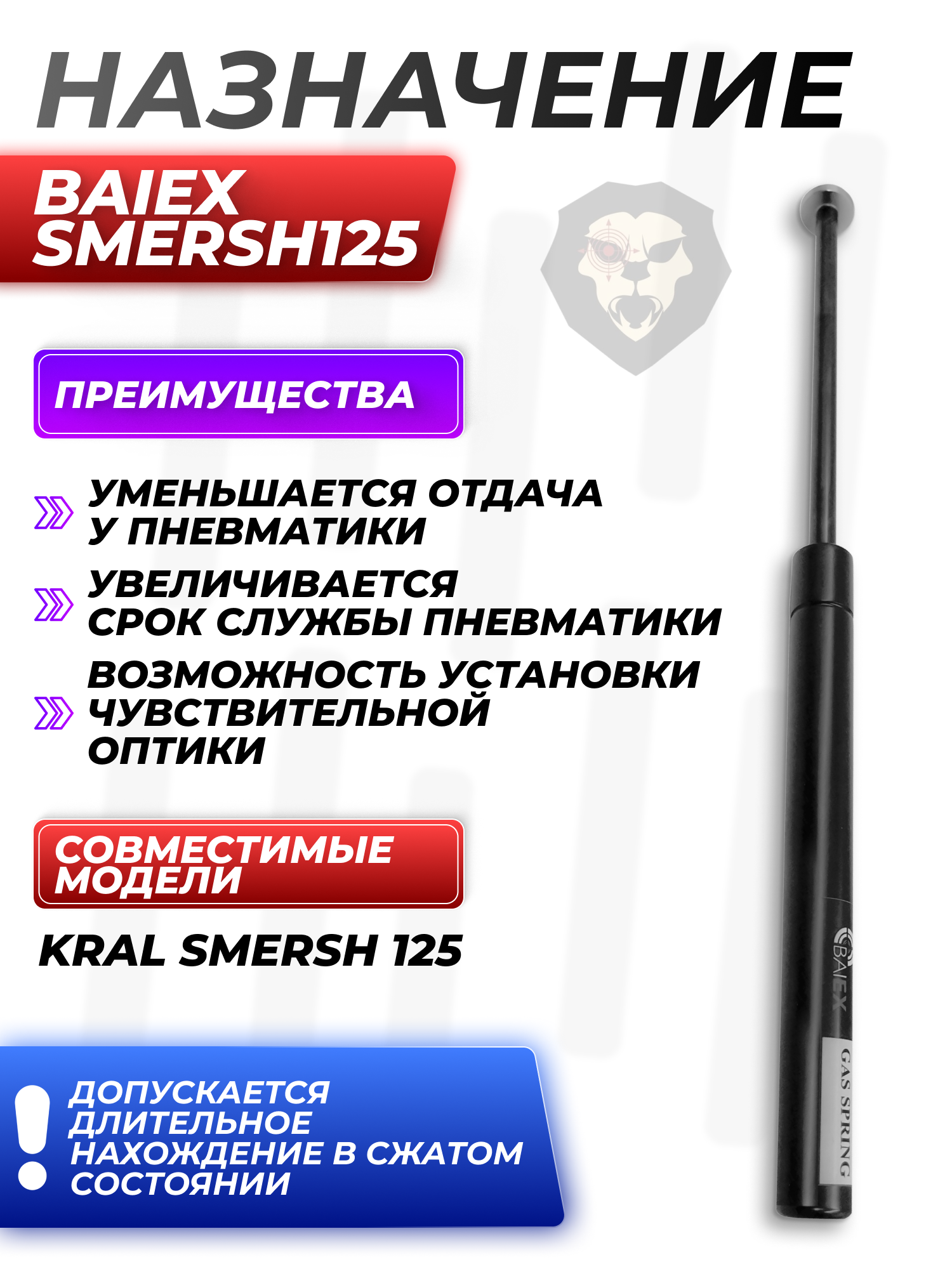 Газовая пружина BAIEX Smersh125 150 Атм (Стандарт, для Kral) купить в интернет-магазине Popadiv10.