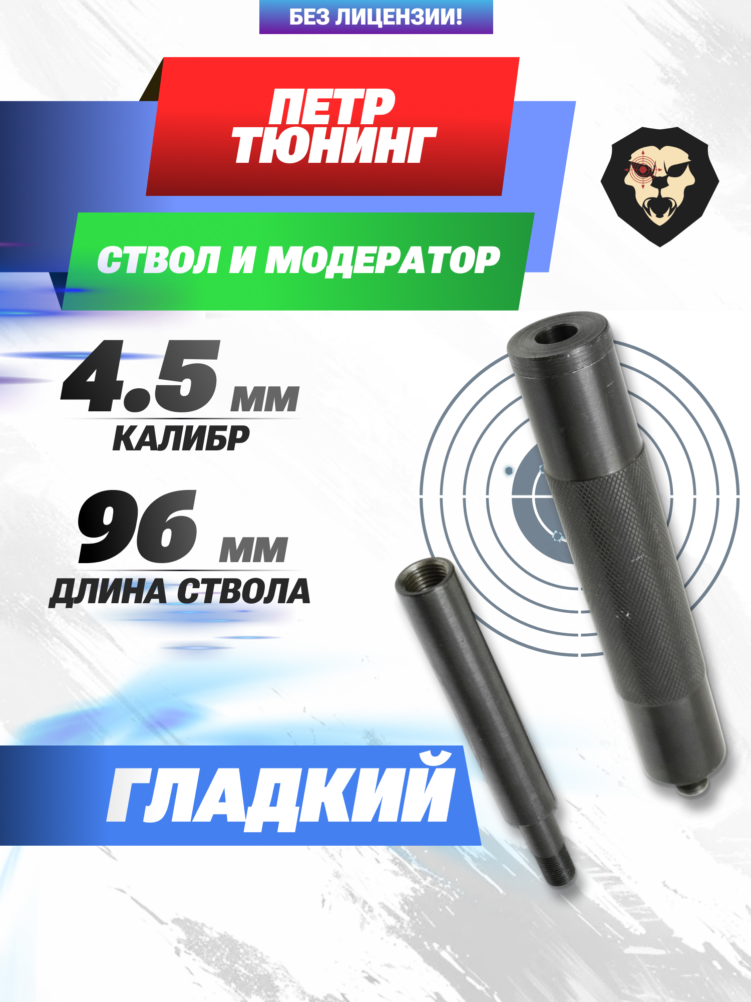 | Особенности | Гладкий ствол 96 мм с резьбой, съемная насадка-имитатор глушителя 140x23.5 мм |