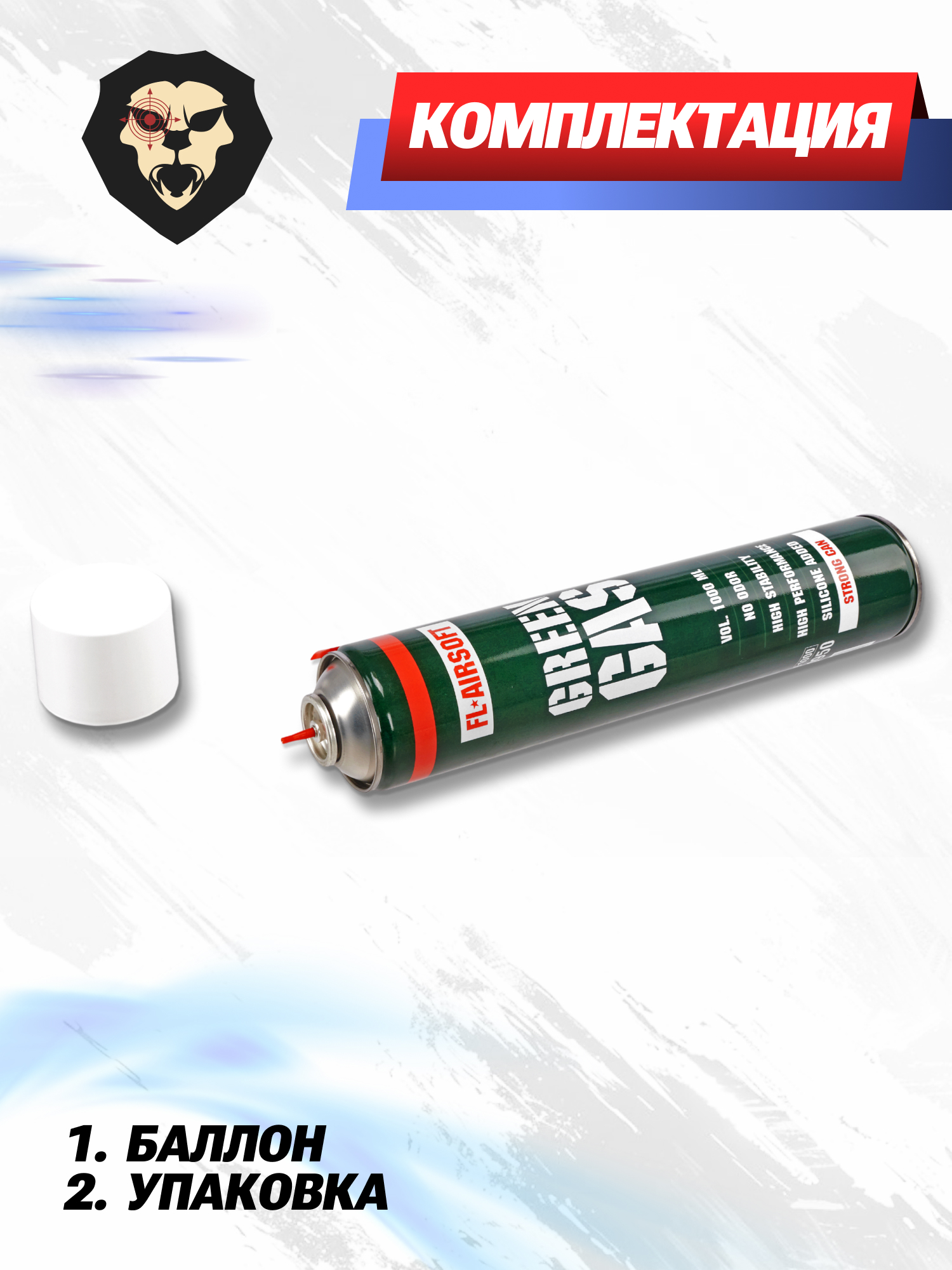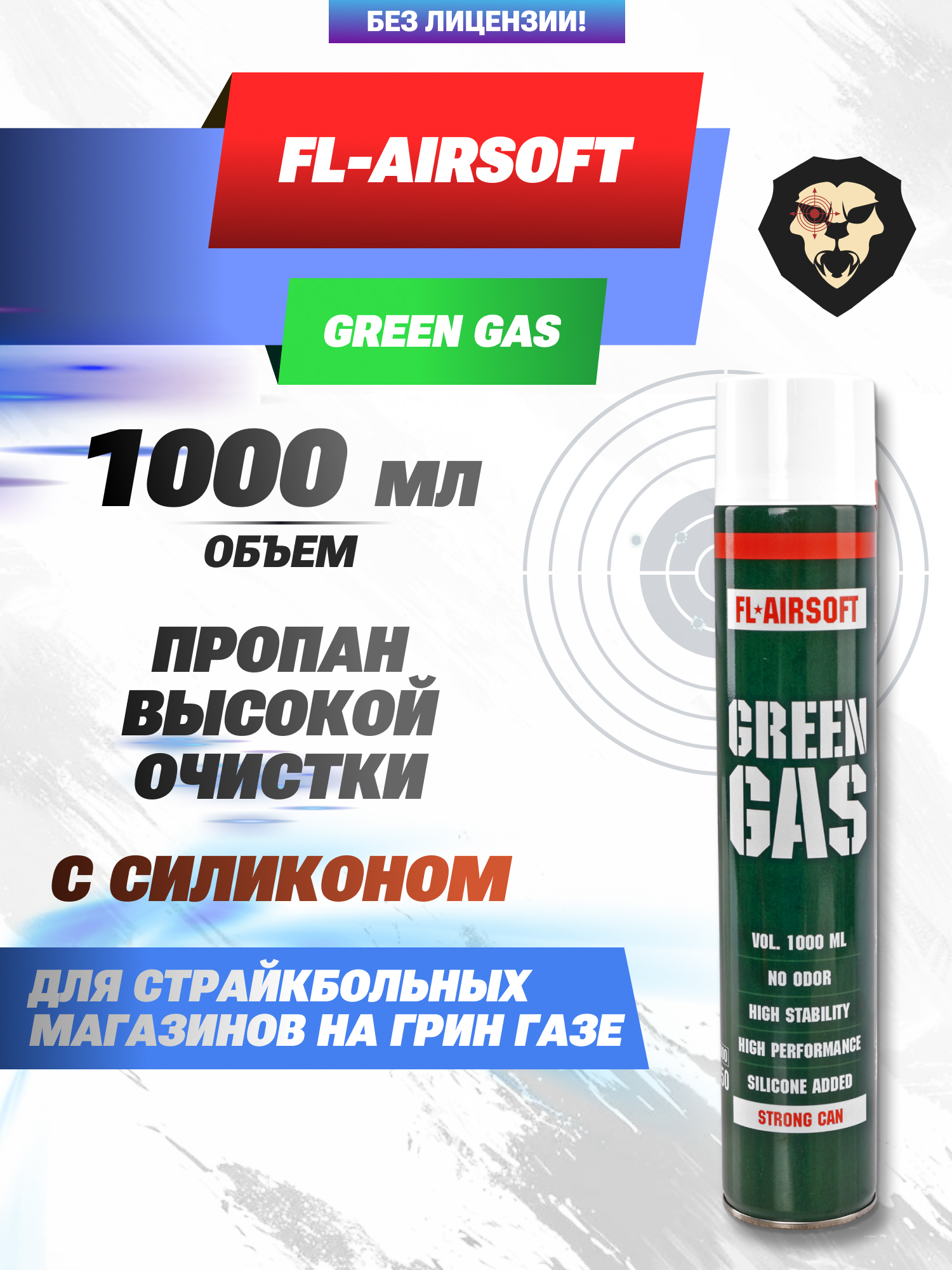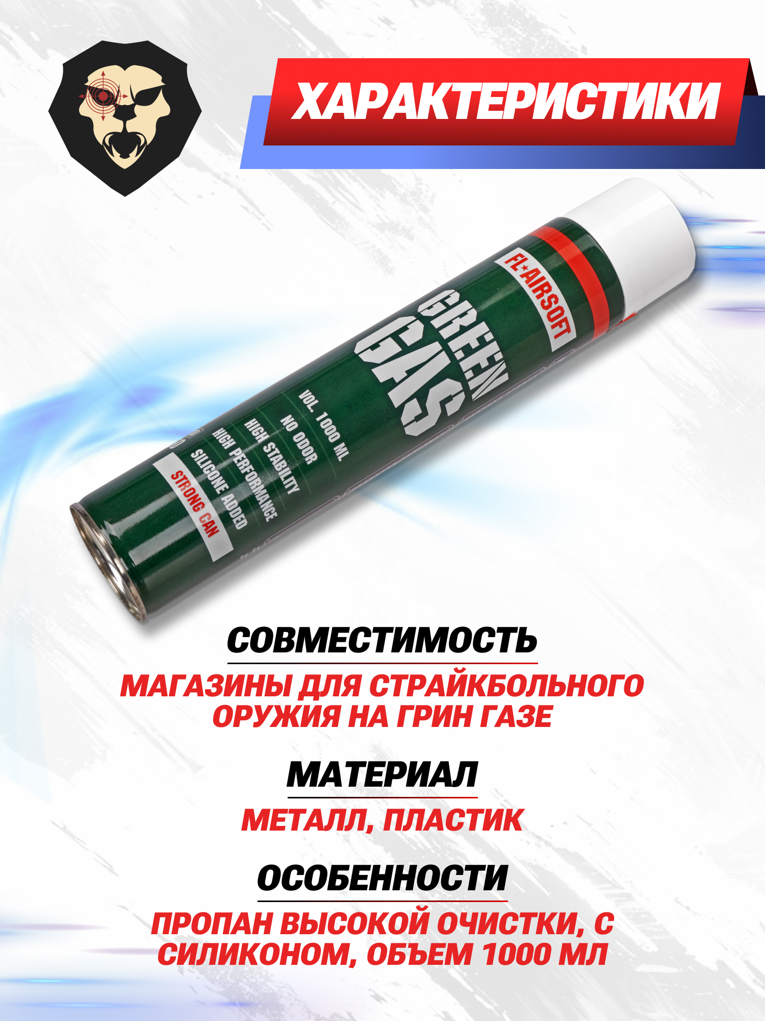 Грин газ для страйкбола от российского производителя FL-Airsoft стал примером словам, озвученным выше. Представленная емкость содержит 1 литр смеси, из которых 900 г составляет полезный объем газа. Остаток приходится на необходимые добавки, в число которых также входит силикон.
