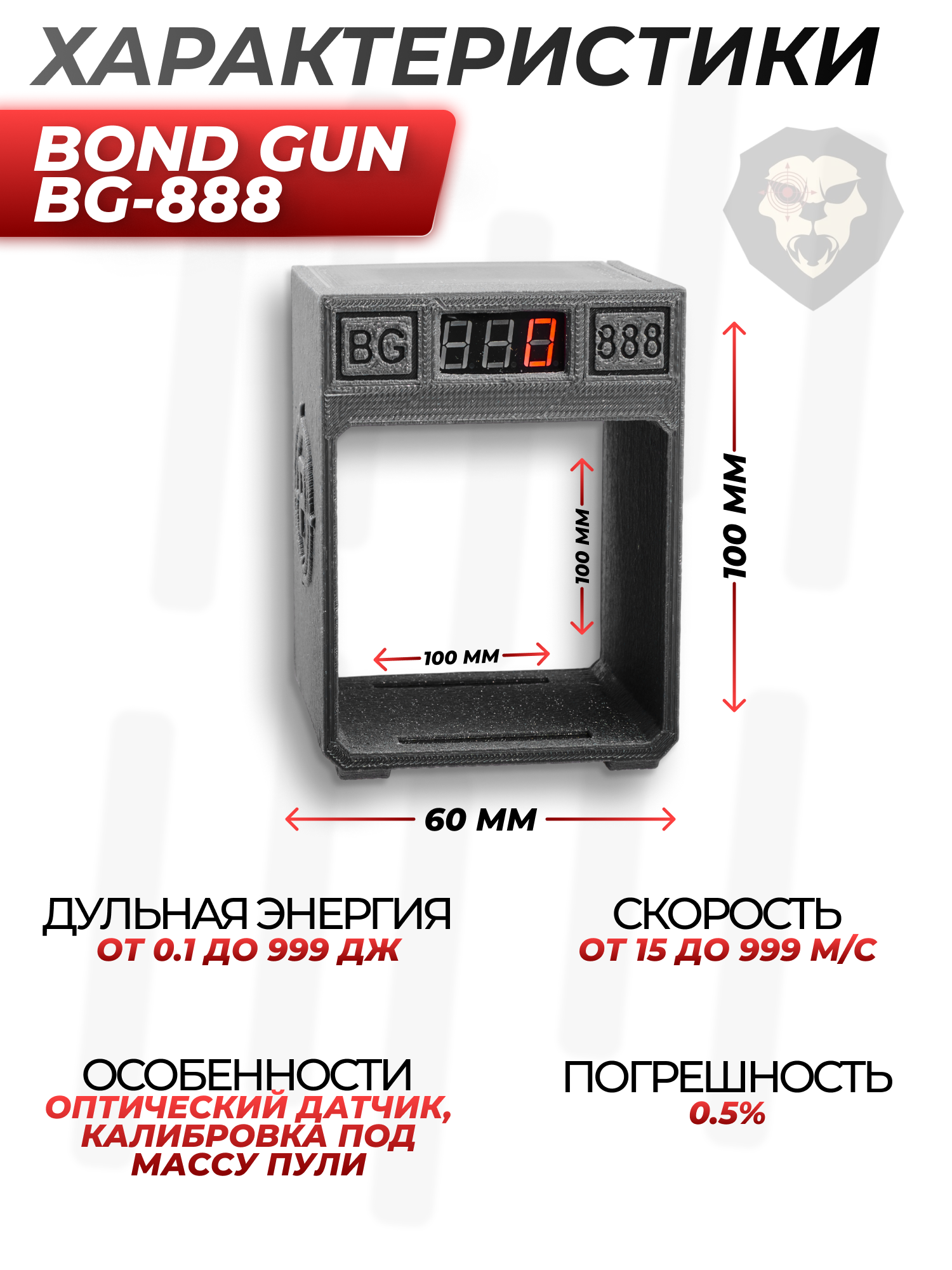 При поиске недорогого оборудования такого класса рекомендуется присмотреться к рассматриваемой модели. Рамочный хронограф Bond Gun BG-888 - легкое и простое в устройстве изделие. Стоит также отметить компактность - габариты корпуса составляют 130x110 миллиметров.
