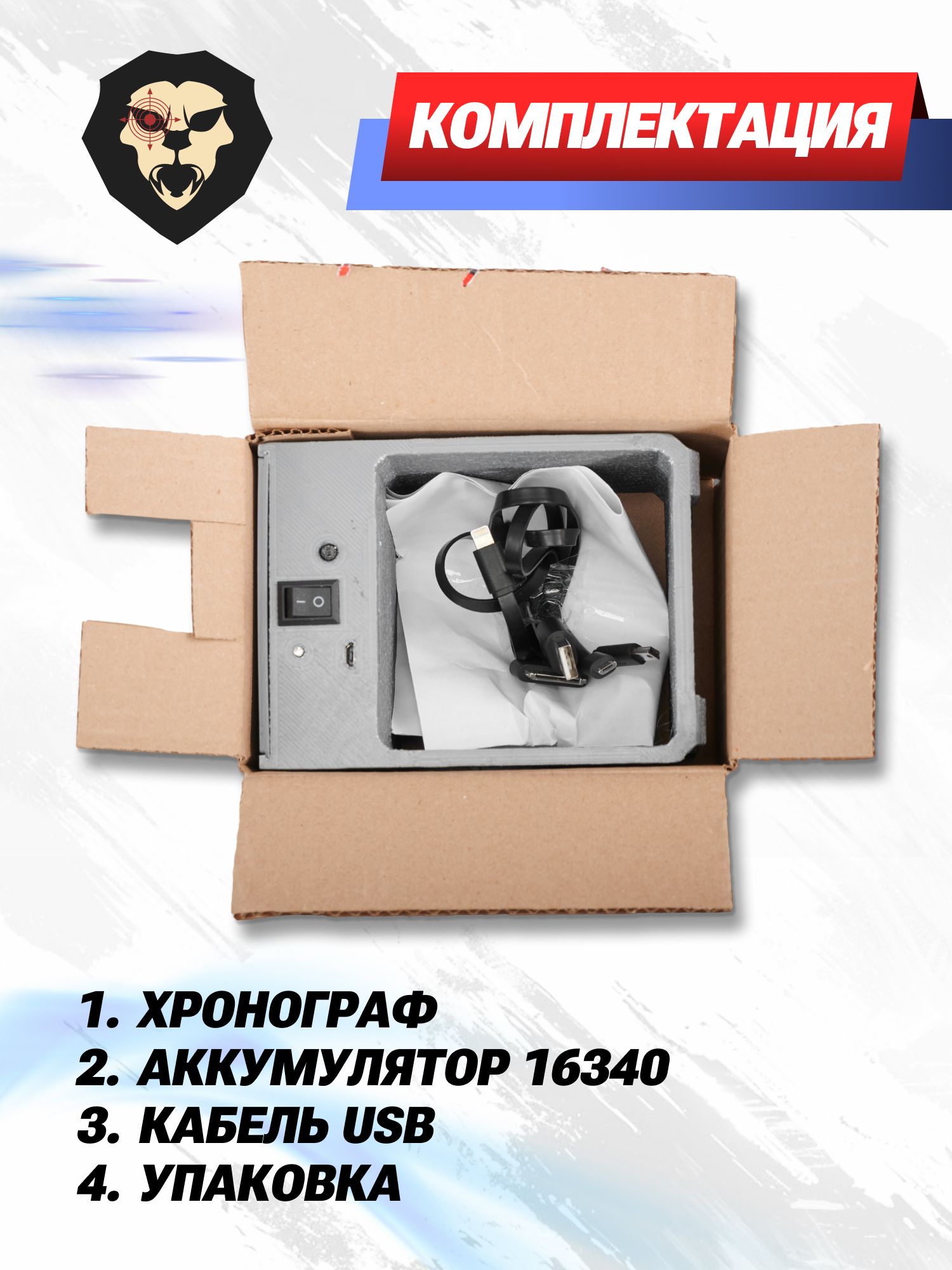| Комплектация | Хронограф, аккумулятор 16340, кабель USB, документация, упаковка |