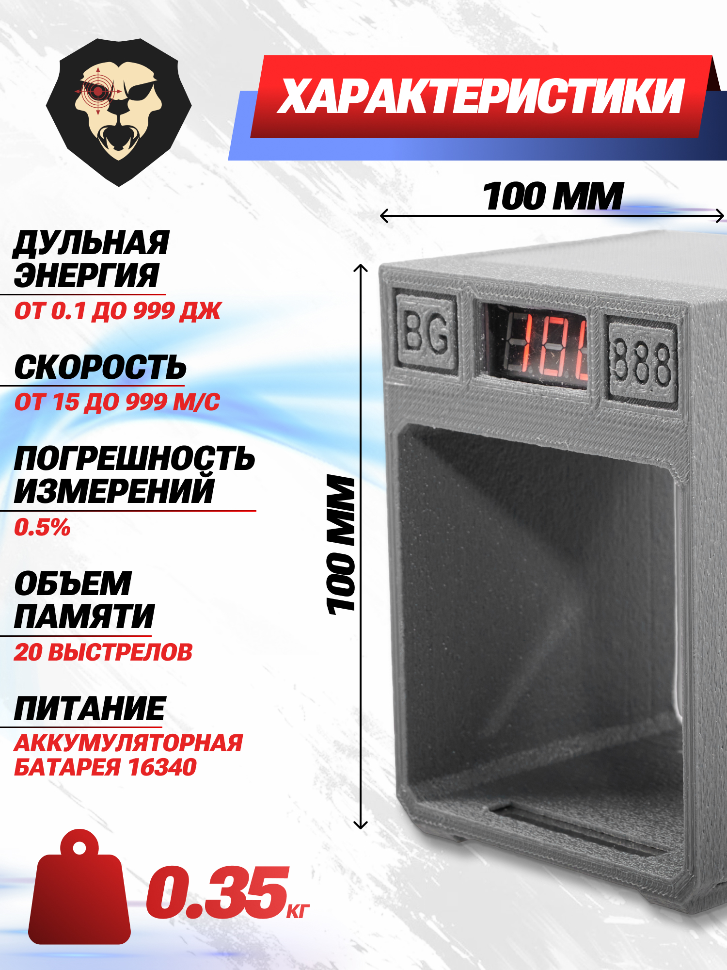 | Особенности | Оптический датчик, калибровка под массу пули |