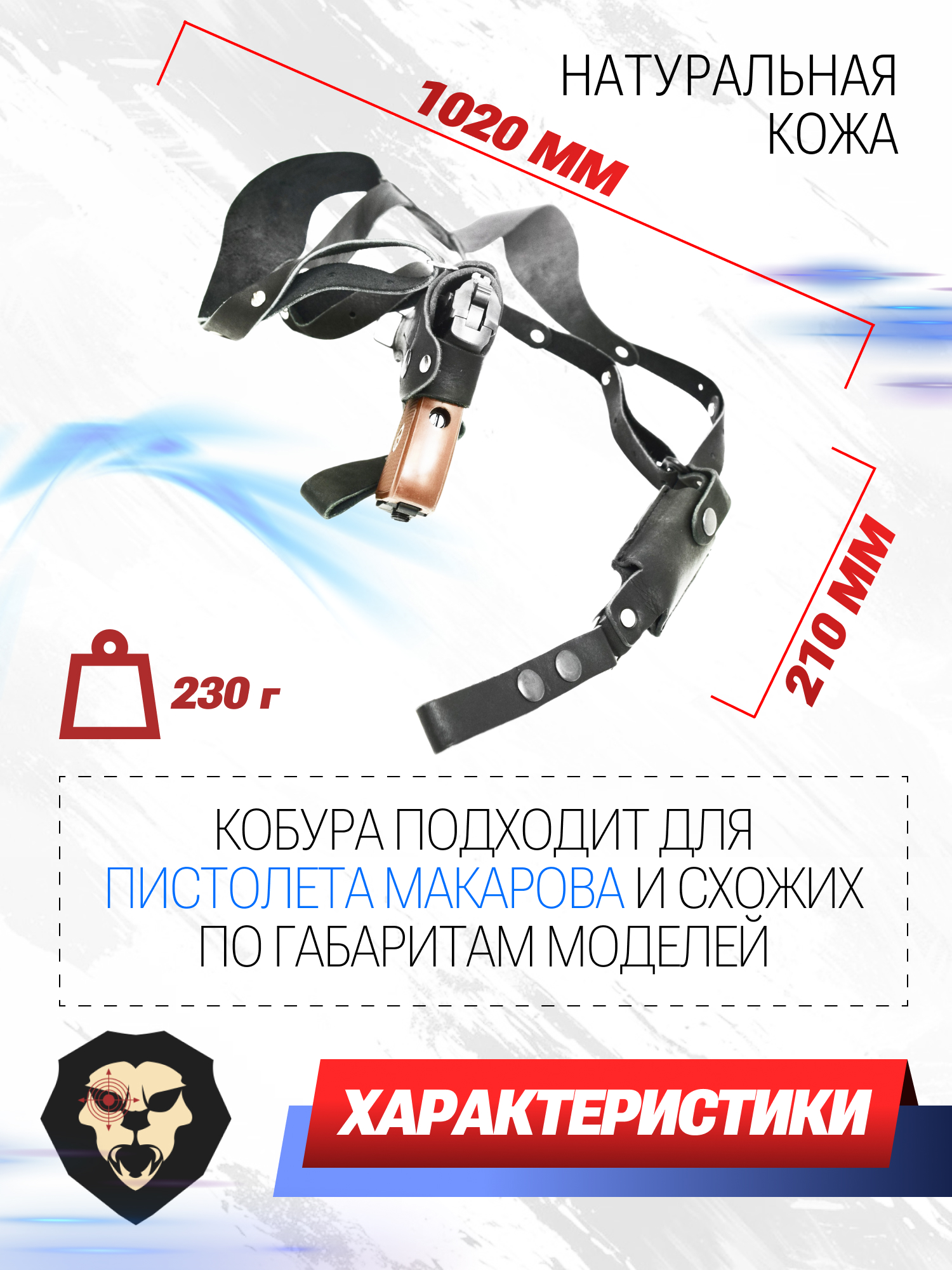 Для оружия на базе пистолета Макарова выпускается кобура для ПМ скрытого ношения оперативная с подвеской для дополнительного магазина. Кобура под пистолет Макарова выполняется из натуральной кожи в Х-образной форме. Полная длина изделия составляет 1020 миллиметра, но длина ремешков регулируется с помощью креплений на концах ремней.