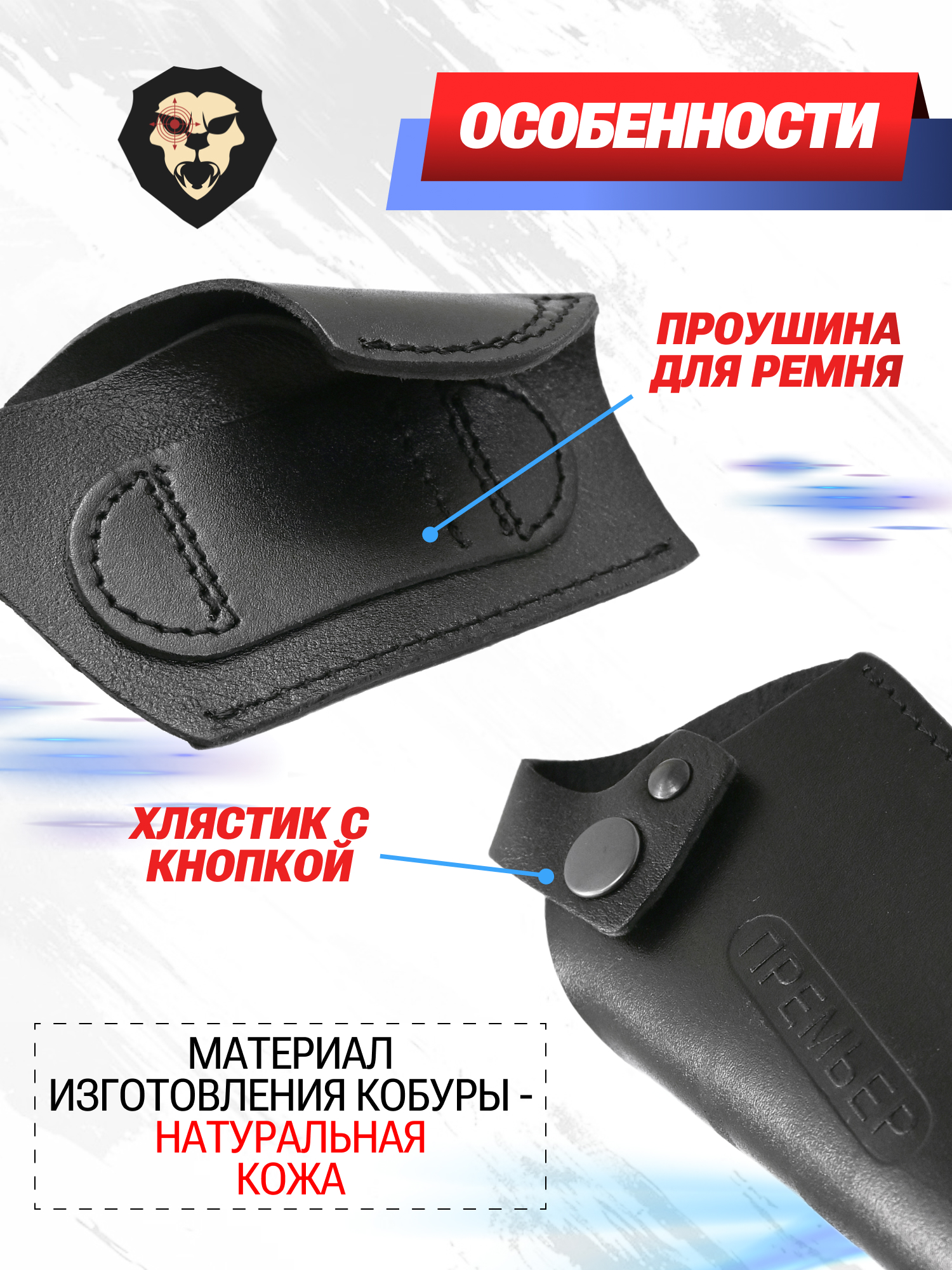 Кобуру для Премьер допускается крепить как рукоятью вперед, так и назад, что расширяет ее функционал. Модель совместима с вариацией пистолета с лазером и без.