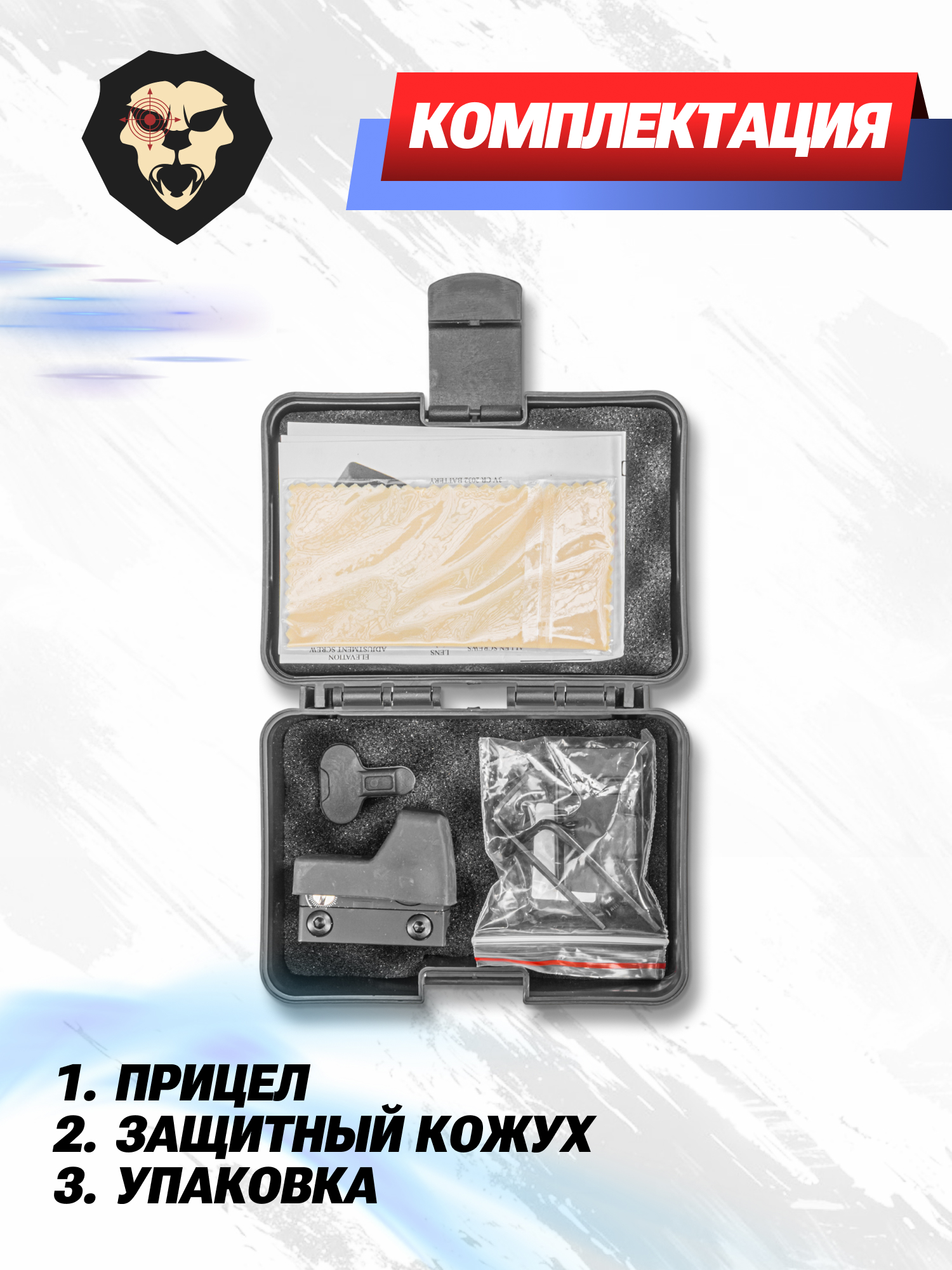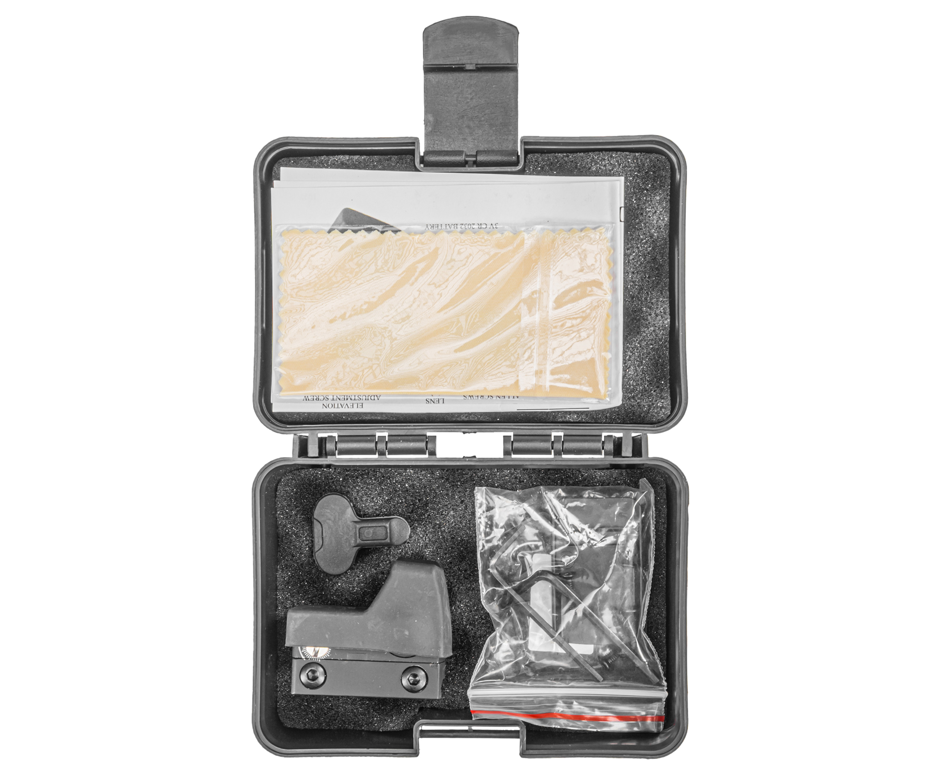 | Комплектация | Коллиматорный прицел, кронштейн Weaver, крепеж, кавер, шестигранные ключи, салфетка, кейс, инструкция, упаковка |
