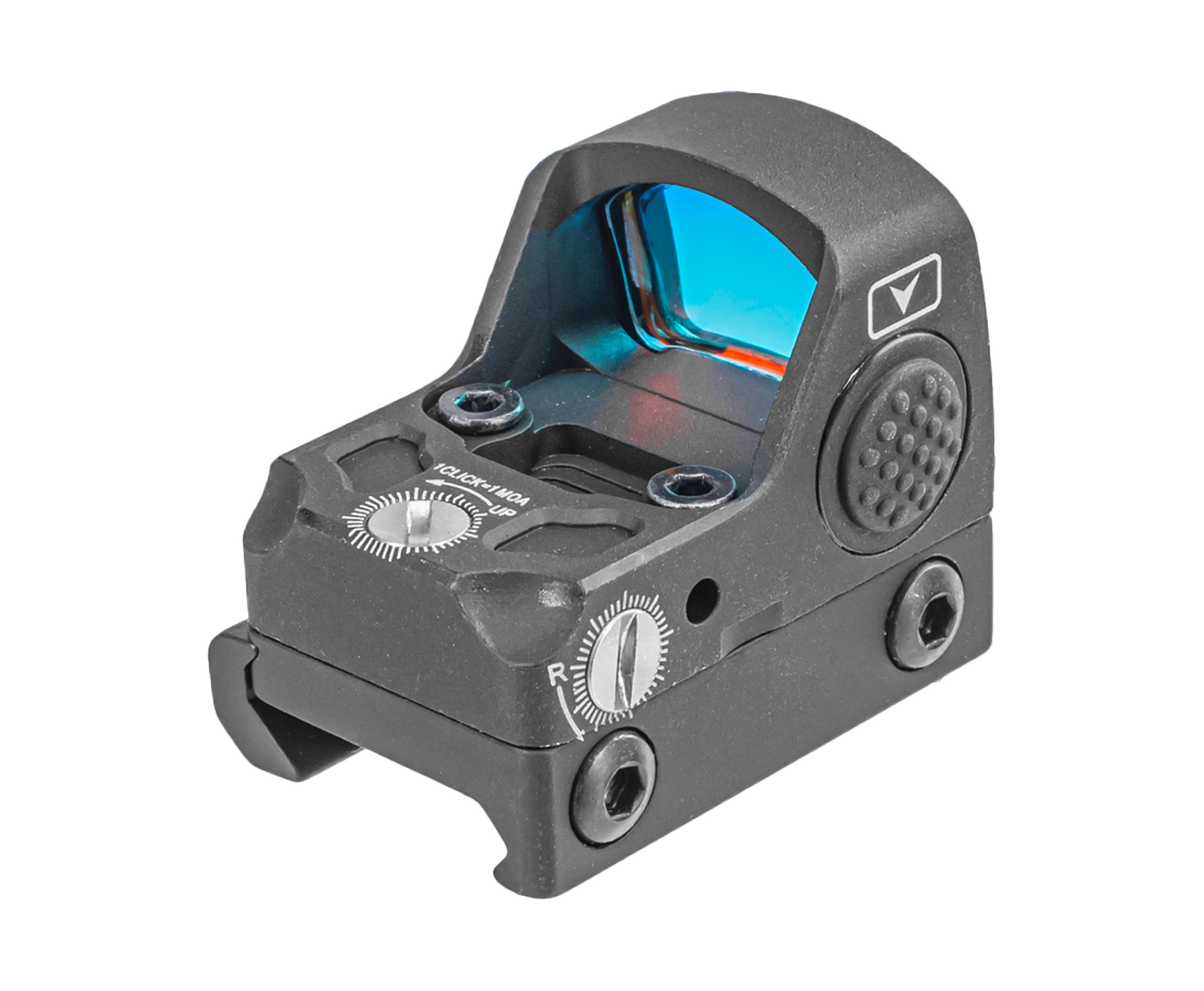 Указанное свойство достигается за счет прицельной марки, роль которой исполняет точка Red Dot. Она проецируется на линзе и при корректных настройках всегда сориентирована по направлению ствола. Метка видна даже под углом, что избавляет владельца от строгого соблюдения вкладки и ускоряет прицеливание.