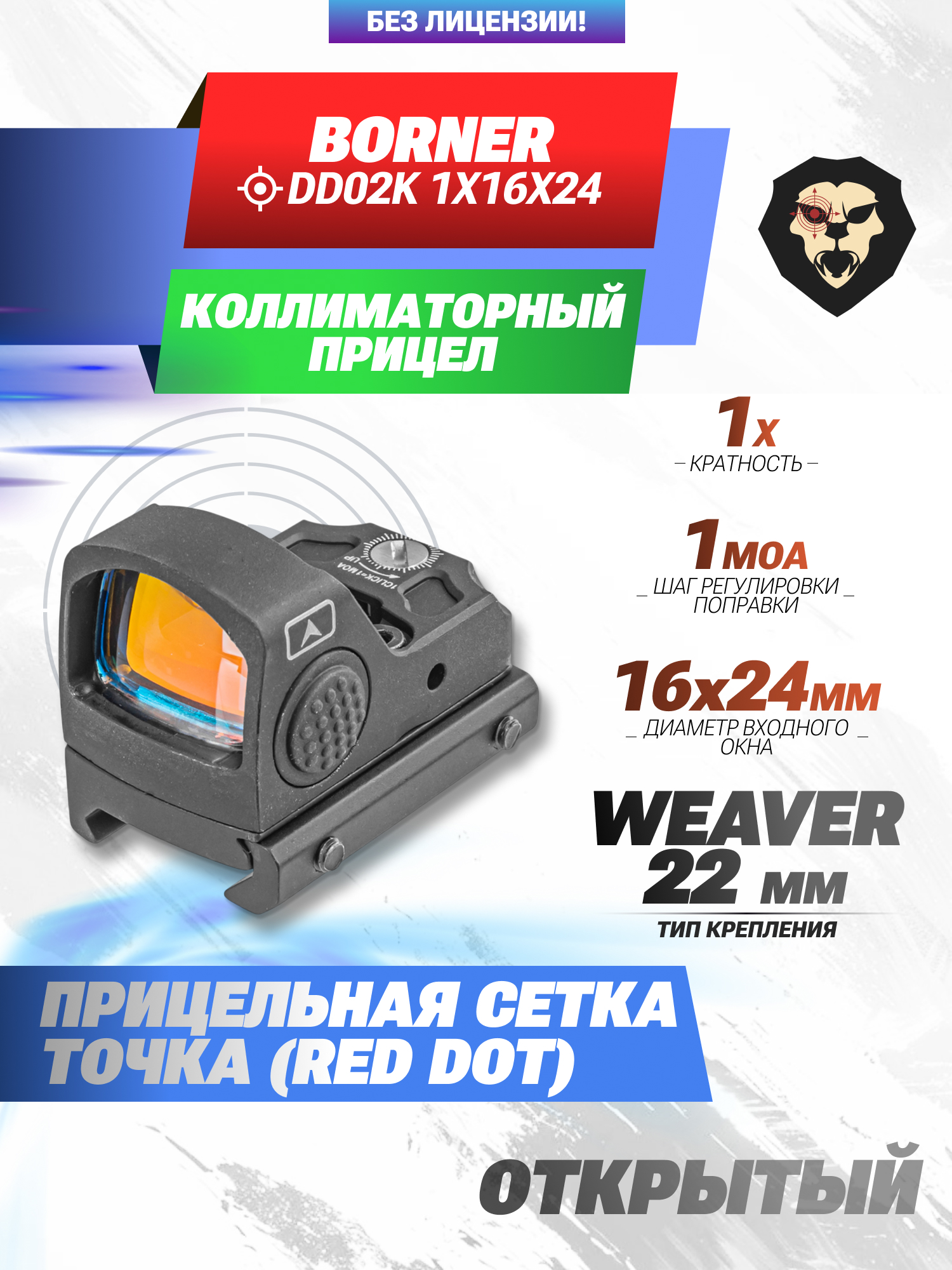 Коллиматорный прицел Borner DD02K 1x16x24 (Weaver, Red Dot) купить в интернет-магазине Popadiv10.