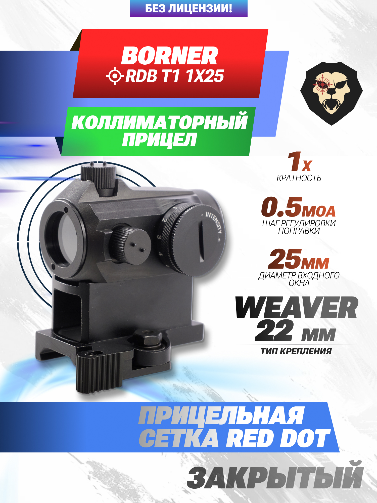 Коллиматорный прицел Borner RDB T1 1x25 (Weaver, Red Dot) купить в интернет-магазине Popadiv10.