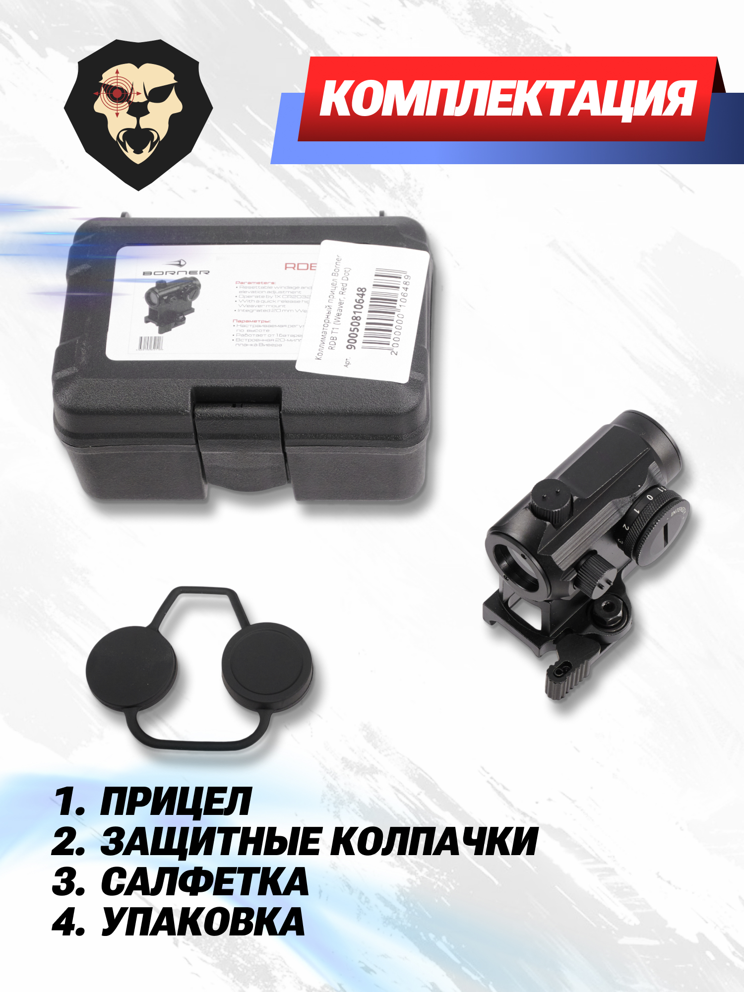 | Комплектация | Коллиматорный прицел, защитные колпачки, салфетка, кейс, упаковка |