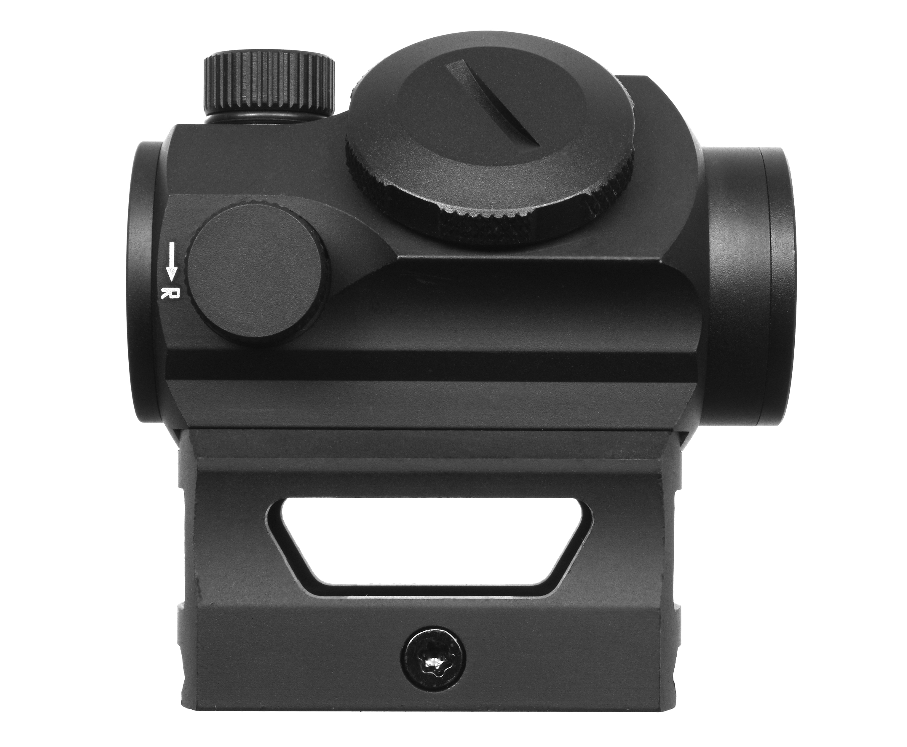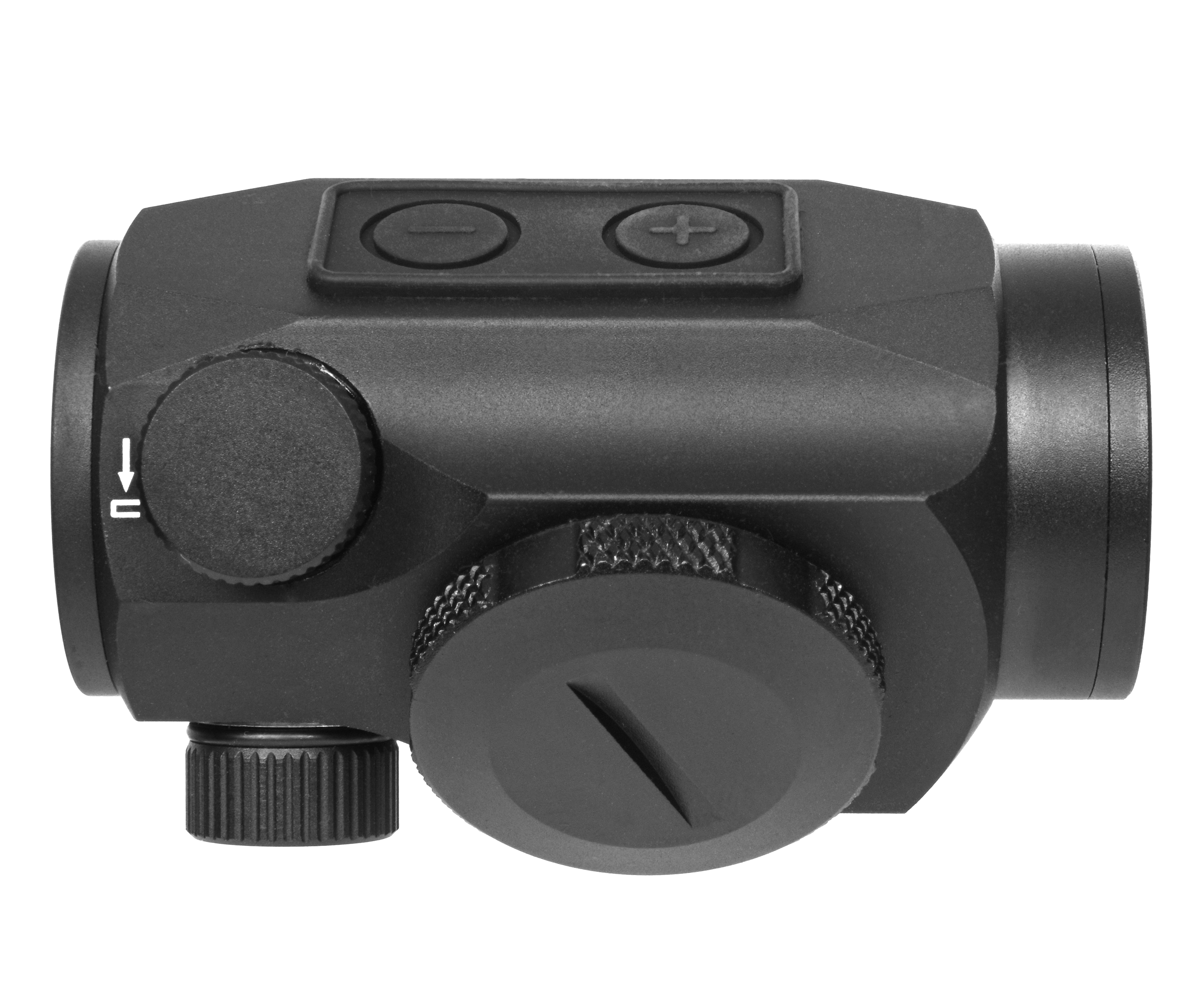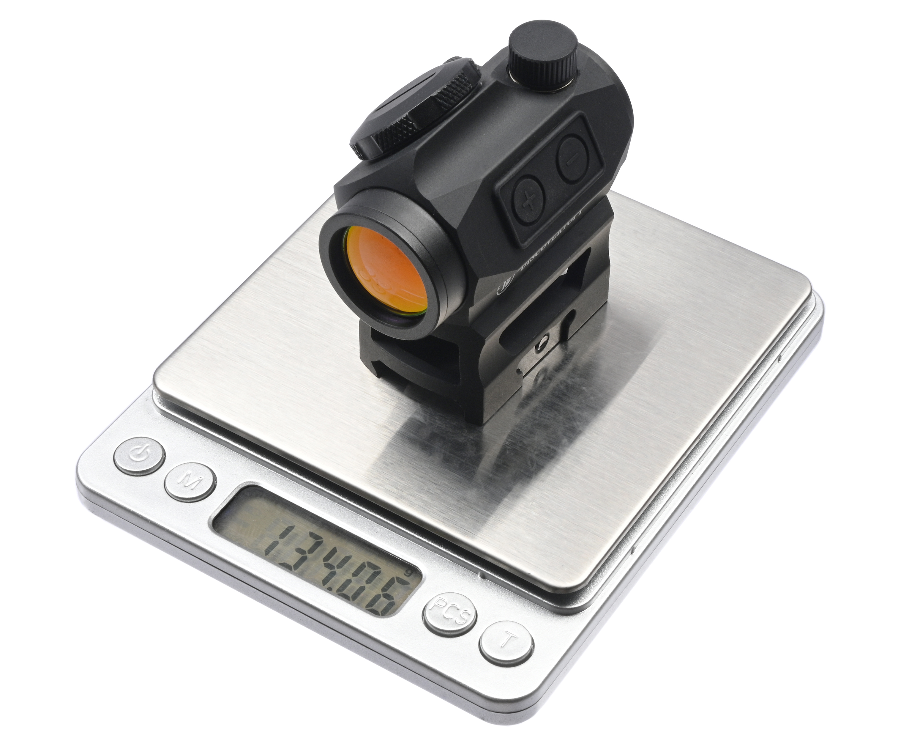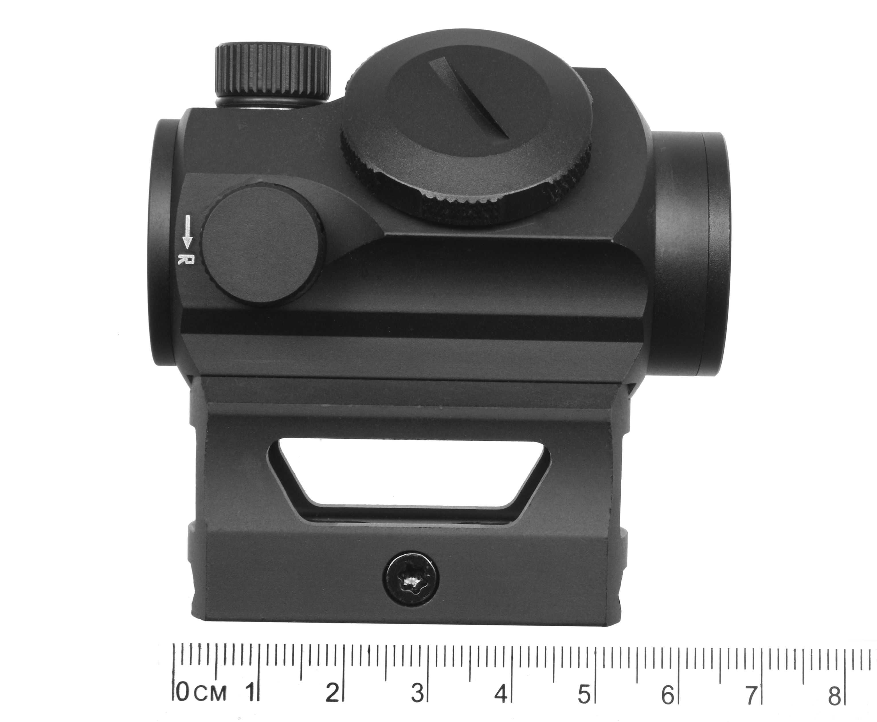 Наведение обеспечивается посредством точки красного цвета. Степень свечения можно без труда настроить по собственному предпочтению. Есть 10 режимов яркости, смена которых выполняется боковыми кнопками с символикой «плюс» и «минус» - клавиши обрезинены и легко различимы на ощупь.