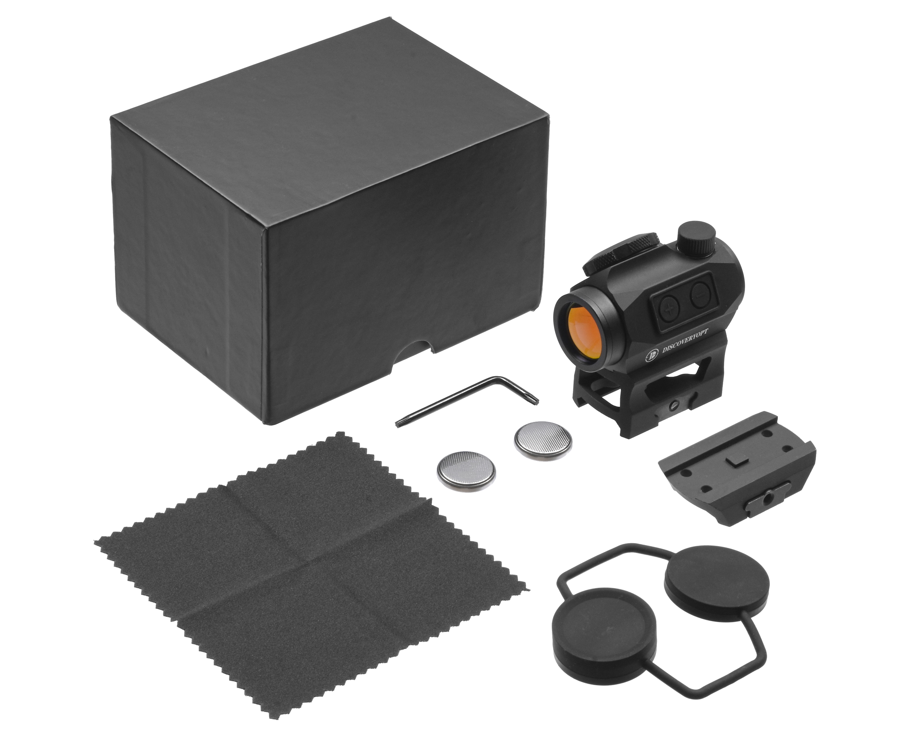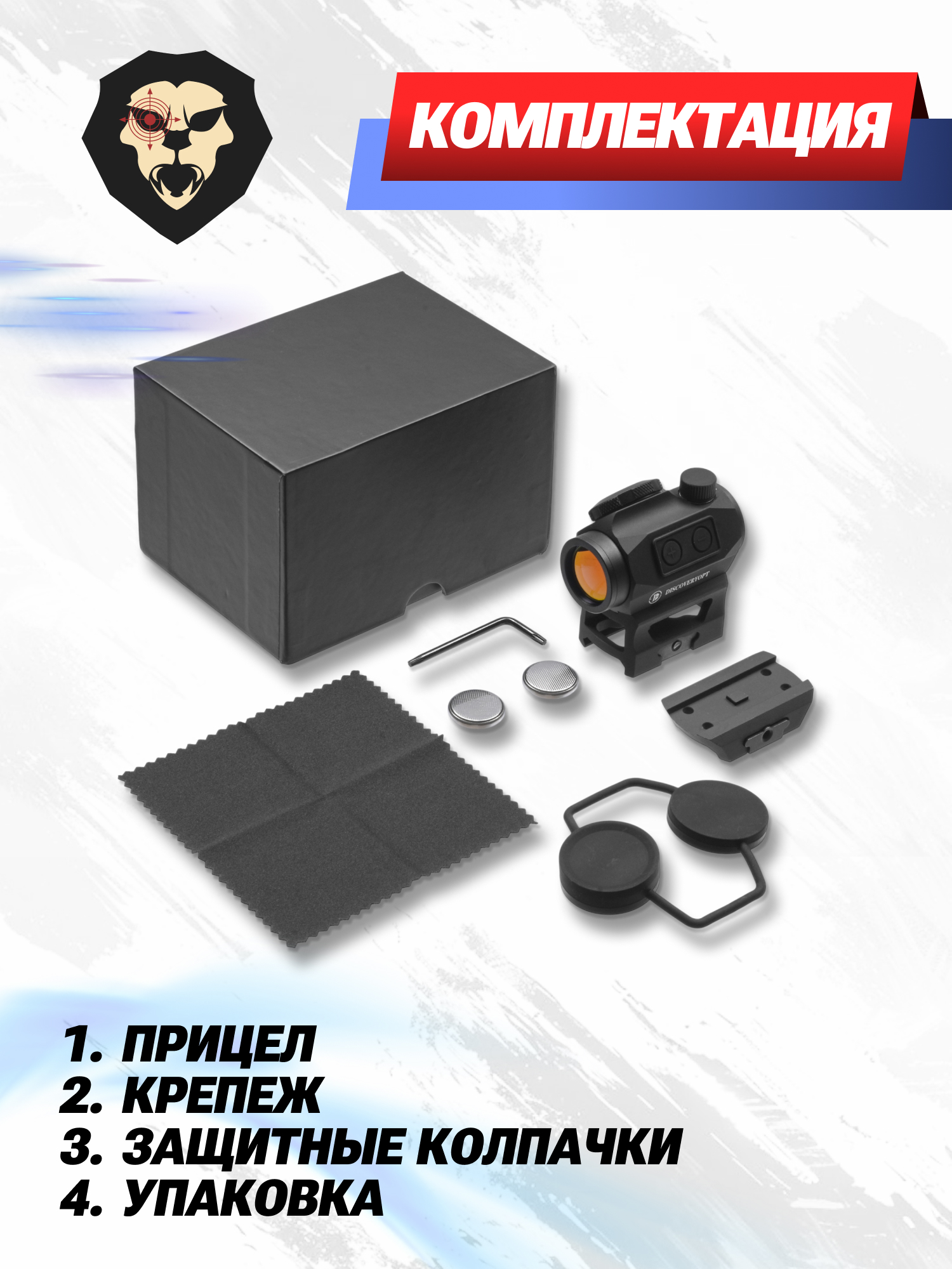 | Комплектация | Коллиматорный прицел, высокий кронштейн, низкопрофильный кронштейн, шестигранник, защитные крышки, салфетка, документация, упаковка |