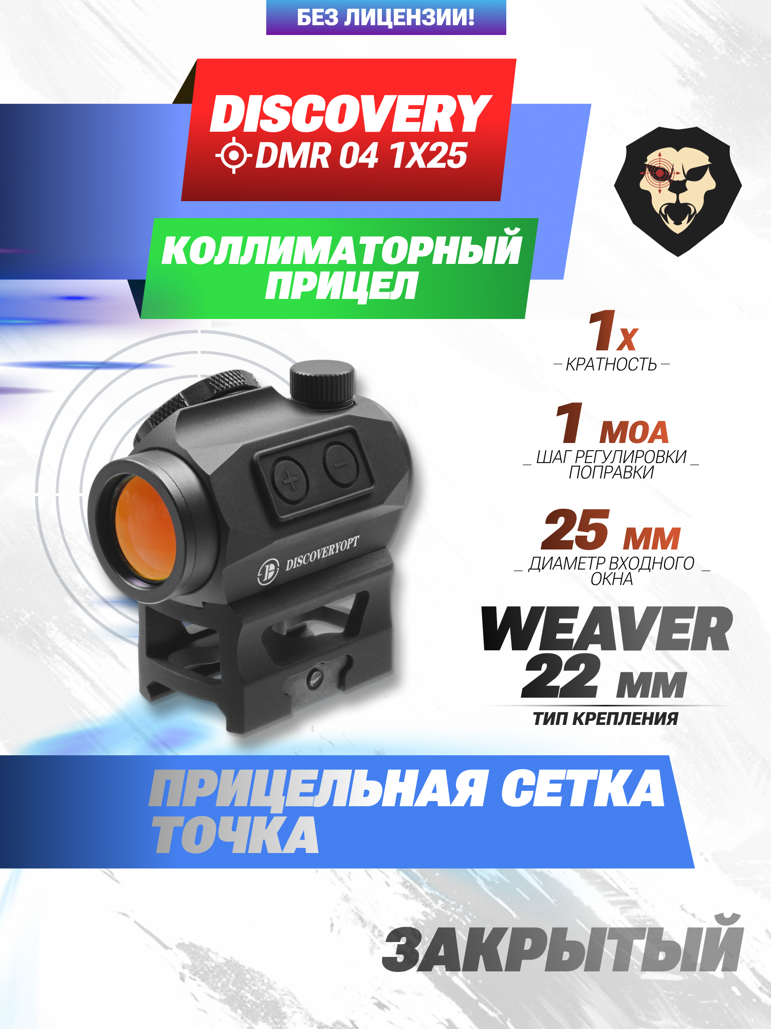 Коллиматорный прицел Discovery DMR 04 1x25 (Weaver, Red Dot) купить в интернет-магазине Popadiv10.