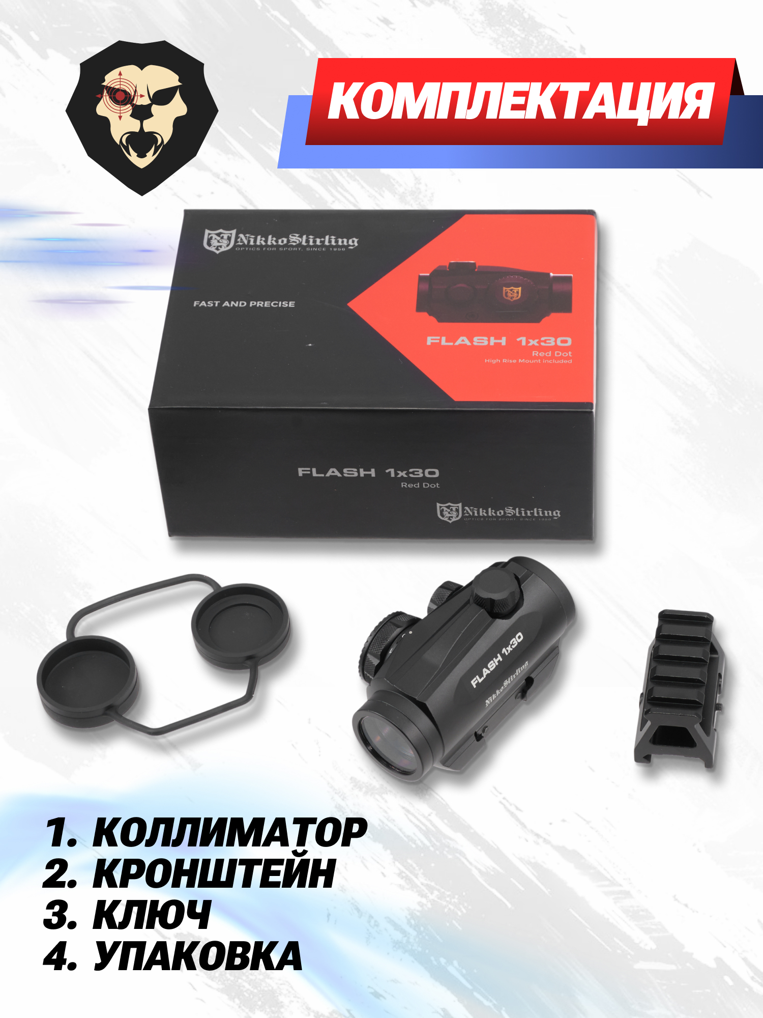 | Комплектация | Коллиматор, кронштейн, салфетка, краткая документация, ключ, упаковка |