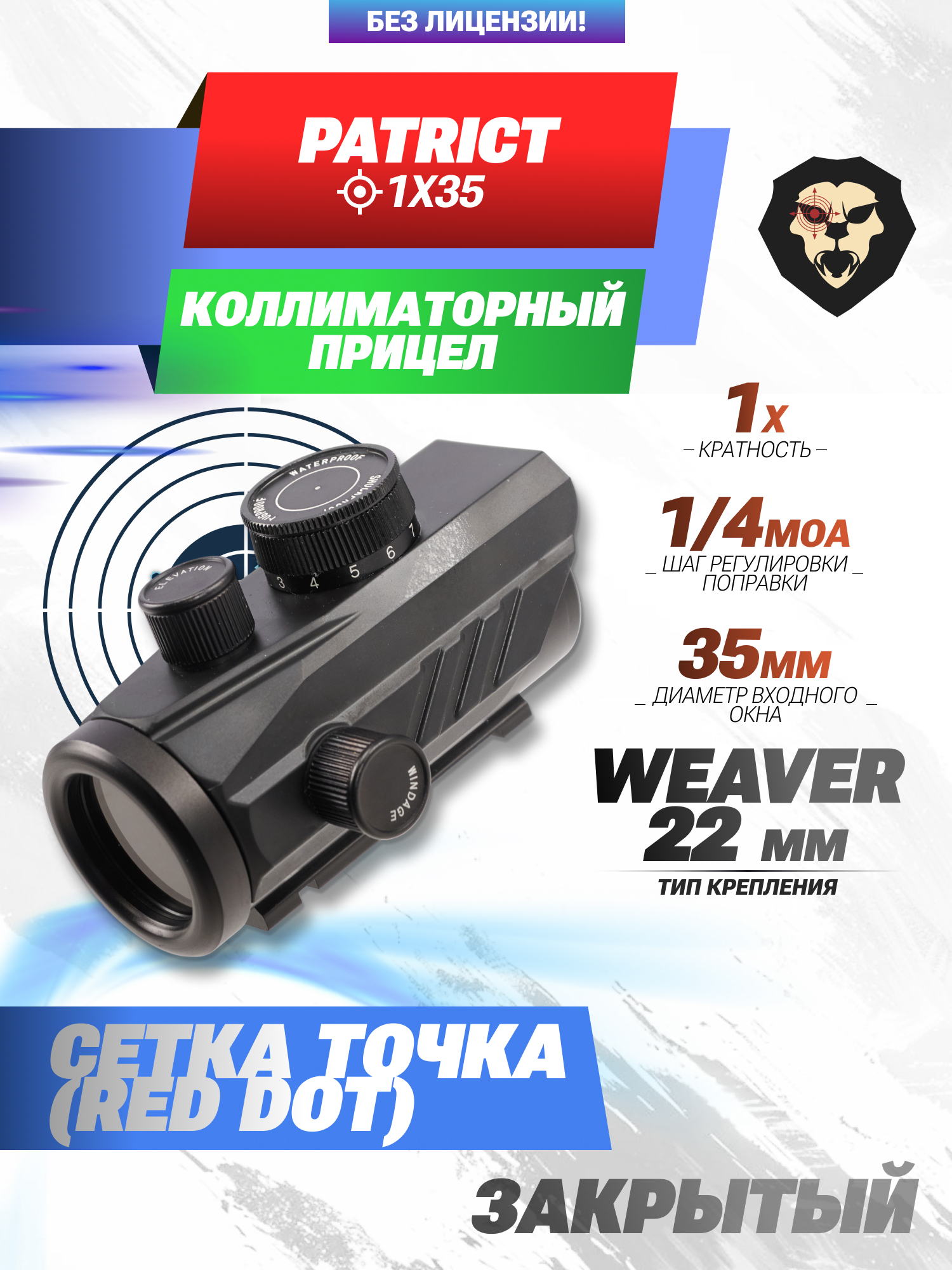 Информация о товаре "Коллиматорный прицел Patrict 1x35 (Weaver, BH-KP553)" носит ознакомительный характер, и не является публичной офертой, определяемой положениями Статьи 437 Гражданского кодекса Российской Федерации, характеристики, внешний вид, цвет и комплектация могут быть изменены производителем без уведомления.