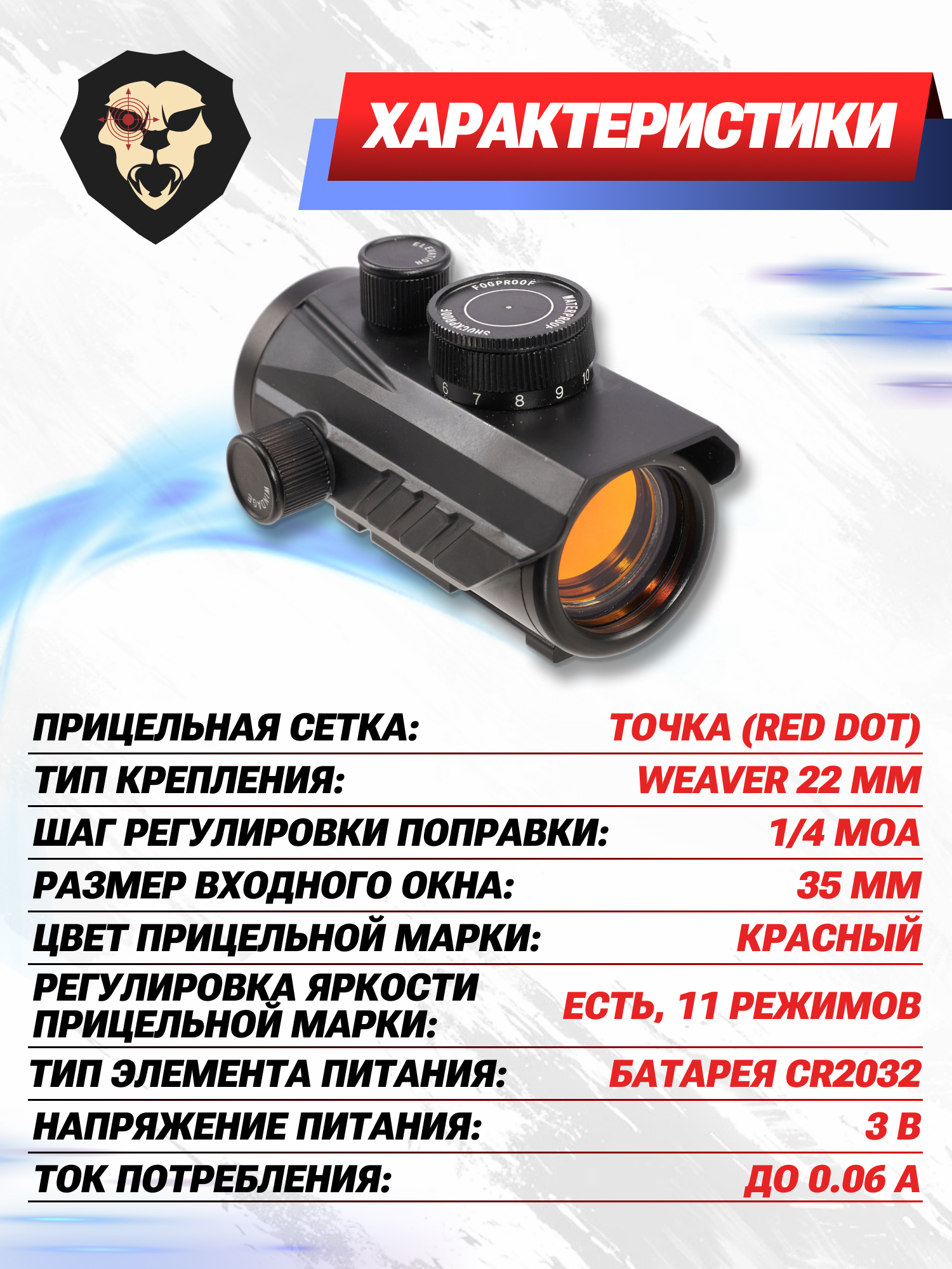 | Тип крепления | Weaver 22 мм |