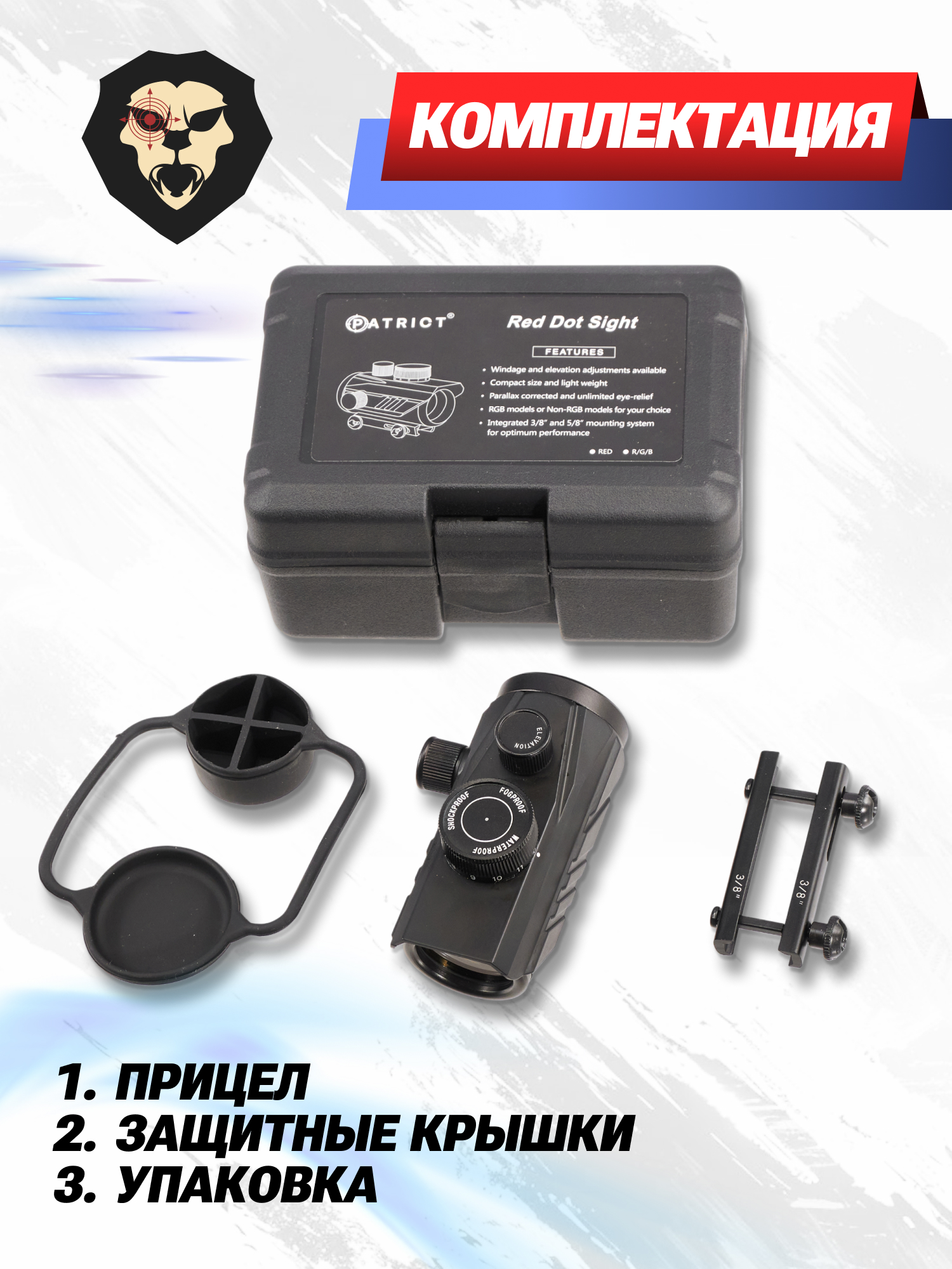 | Комплектация | Прицел, салфетка, батарея CR2032, защитные колпачки, краткая документация, упаковка |