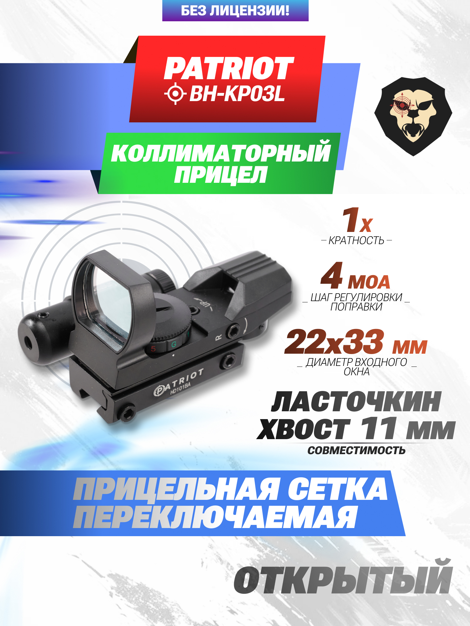 Коллиматорный прицел Patriot 1х33х22 (ЛЦУ, Ласточкин хвост, BH-KP03L) купить в интернет-магазине Popadiv10.