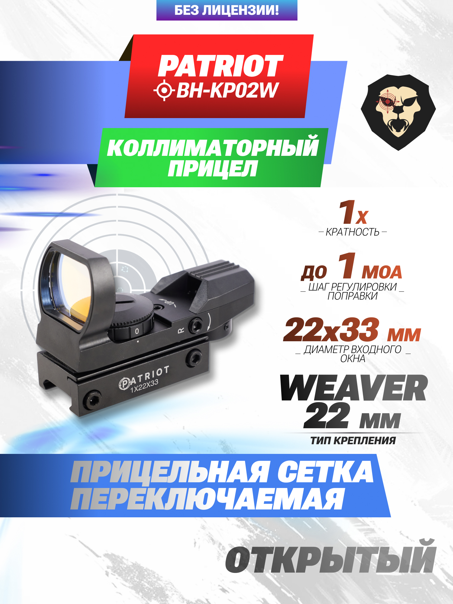 Коллиматорный прицел Patriot 1x22x33 (BH-KP02W, Weaver) купить в интернет-магазине Popadiv10.