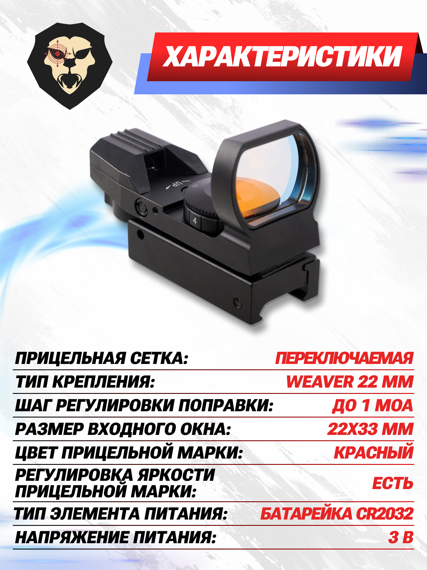 Новинкой в коллекции подобных приборов стало изделие бренда Patriot, известного среди стрелков качеством исполнения продукции, а также доступной ценой на нее. Рассматриваемый коллиматор относится к типу открытых и оснащается входной линзой с габаритами 22x33 миллиметра. Такой тип оптического элемента формирует расширенный угол обзора при наблюдении целей на дистанции.