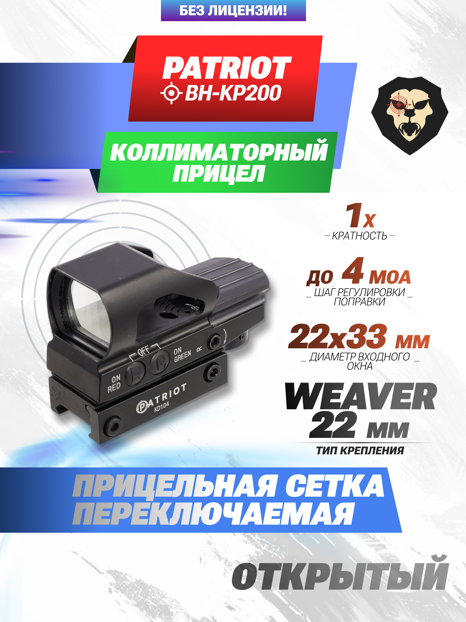 Коллиматорный прицел Patriot BH-KP200 1x22x33 (Weaver) купить в интернет-магазине Popadiv10.