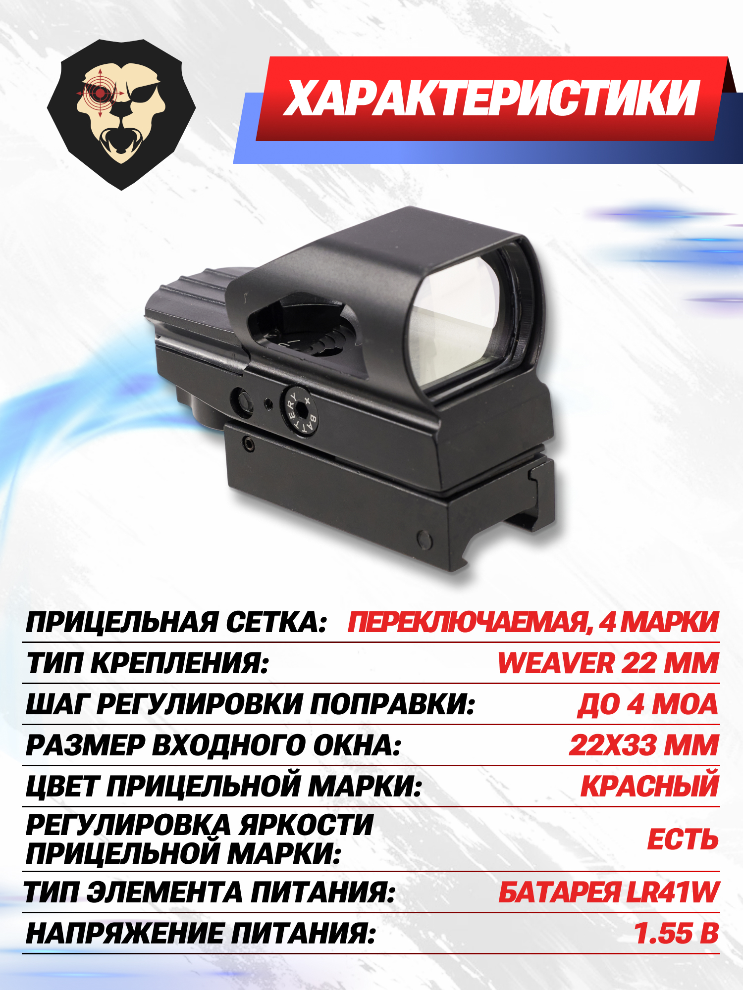 | Тип крепления | Weaver 22 мм |