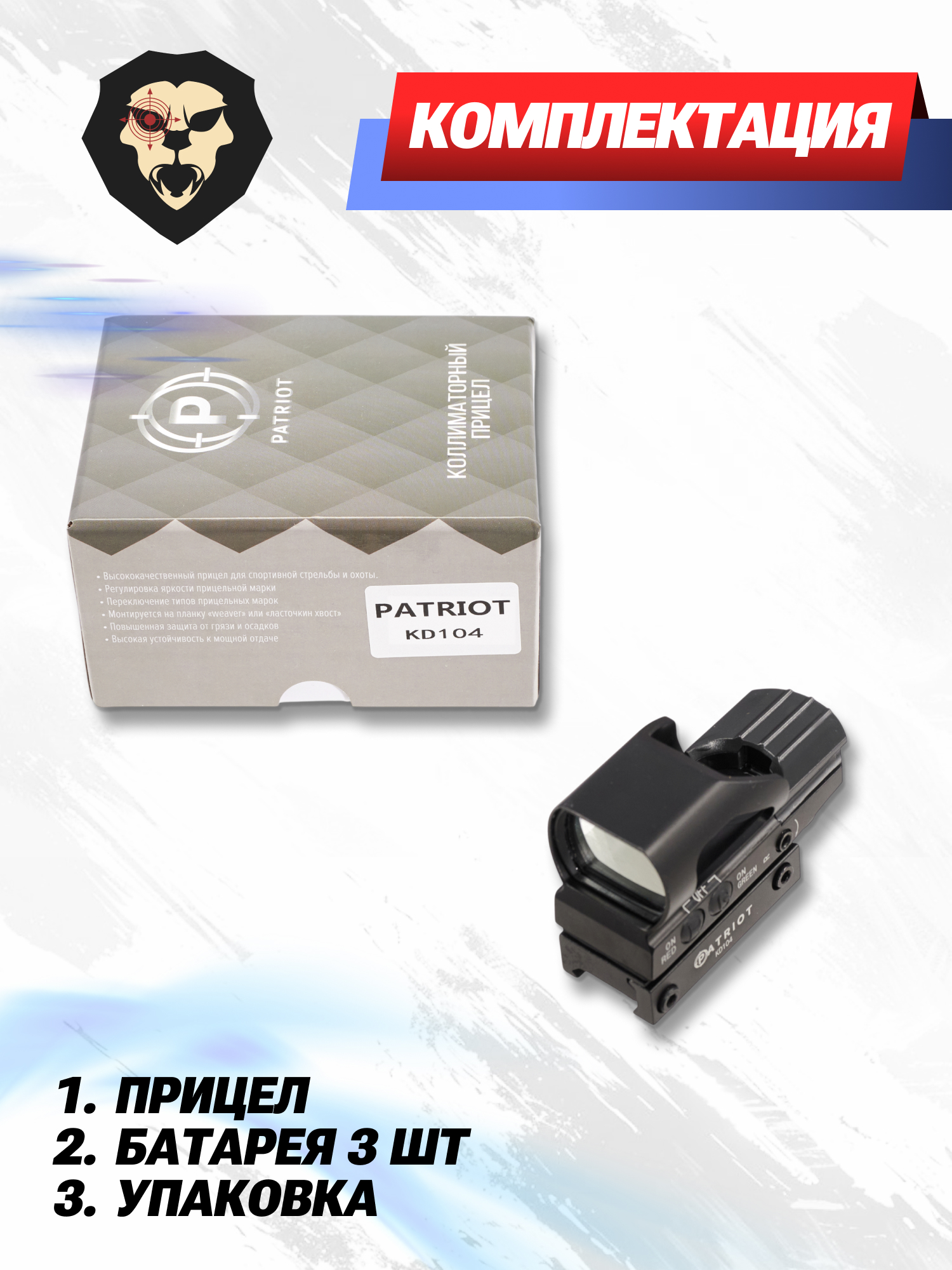 Информация о товаре "Коллиматорный прицел Patriot BH-KP200 1x22x33 (Weaver)" носит ознакомительный характер, и не является публичной офертой, определяемой положениями Статьи 437 Гражданского кодекса Российской Федерации, характеристики, внешний вид, цвет и комплектация могут быть изменены производителем без уведомления.