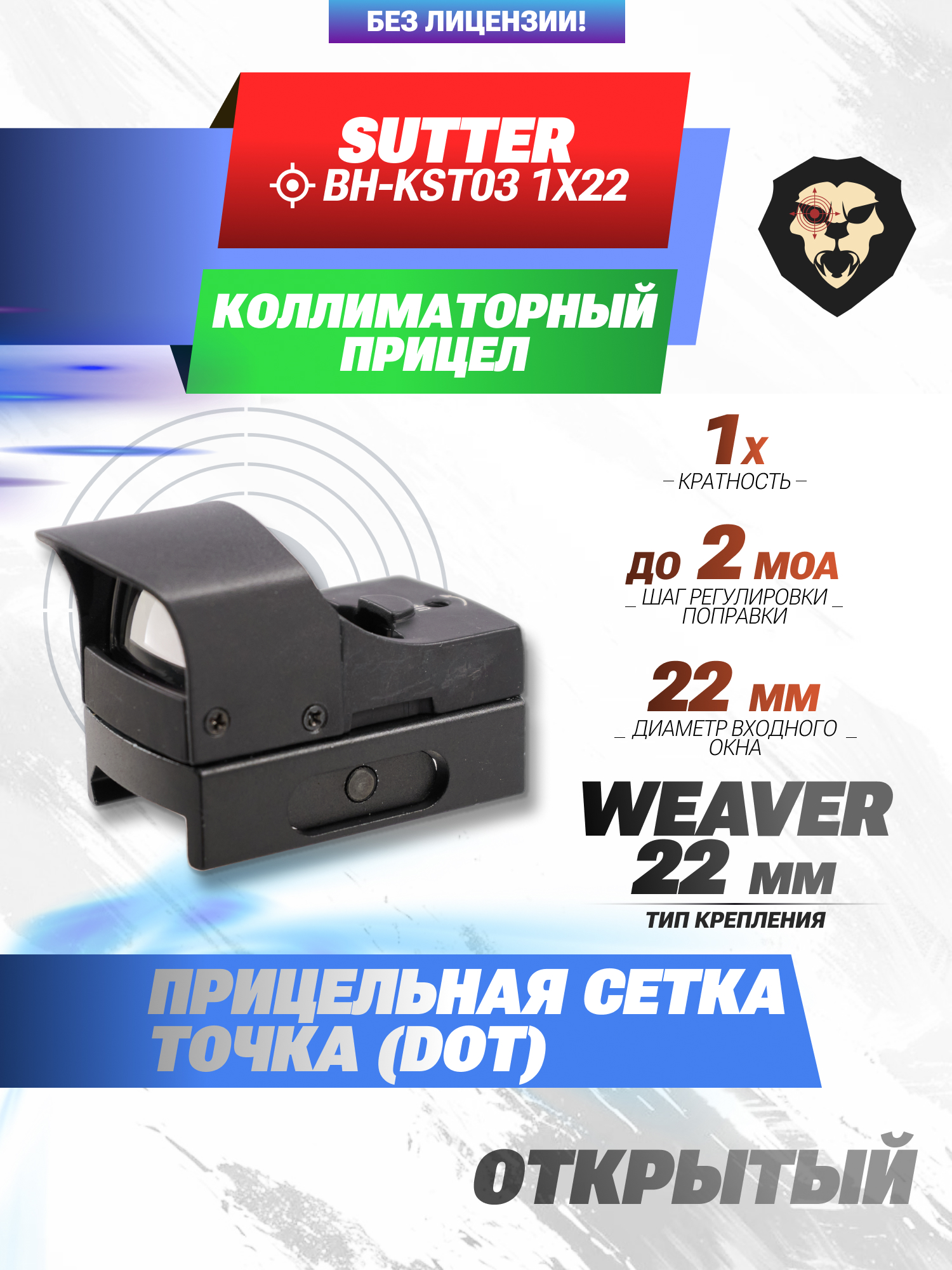 Коллиматорный прицел Sutter BH-KST03 1x22 (Weaver, HD107X) купить в интернет-магазине Popadiv10.