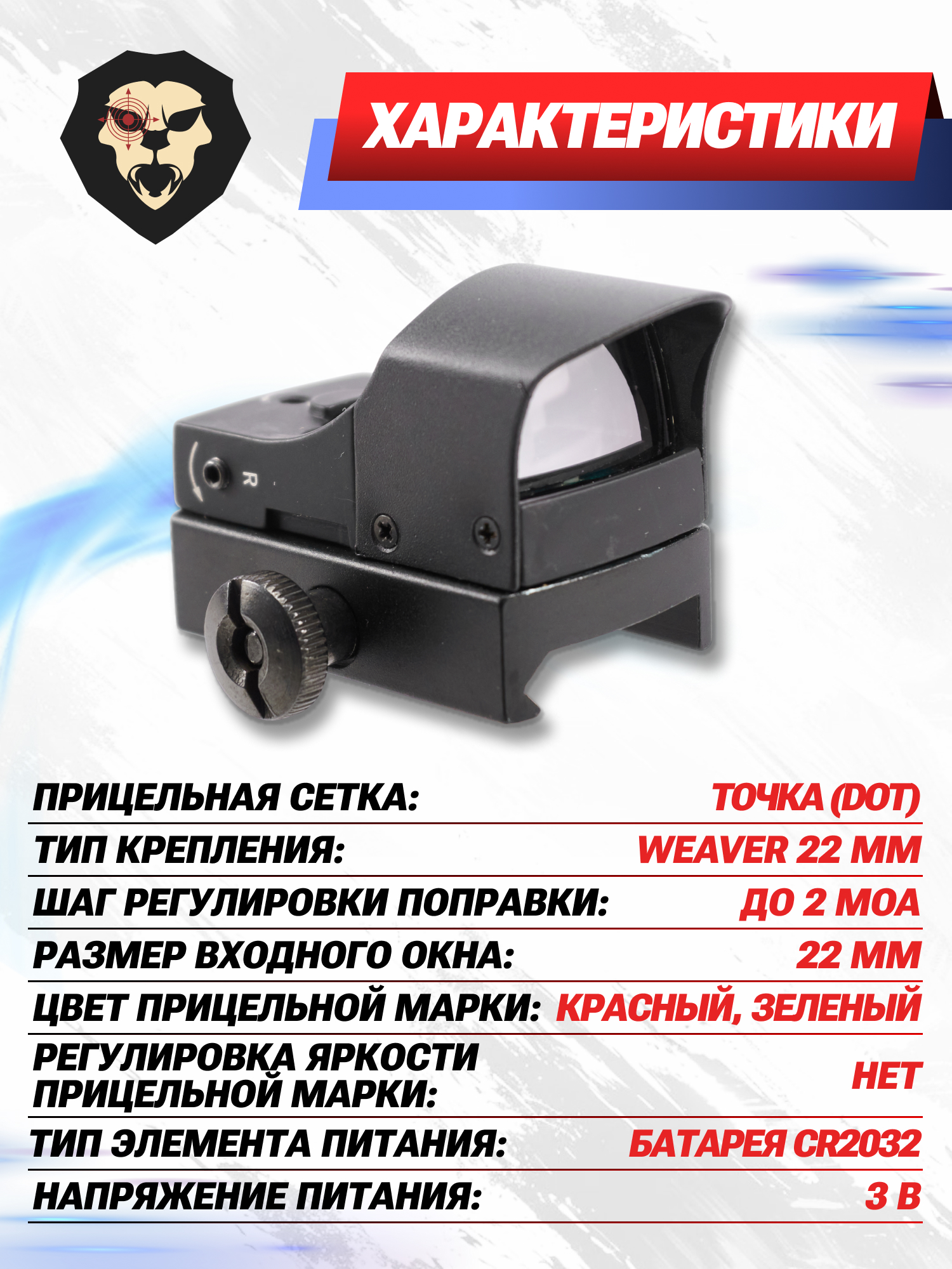 | Тип крепления | Weaver 22 мм |