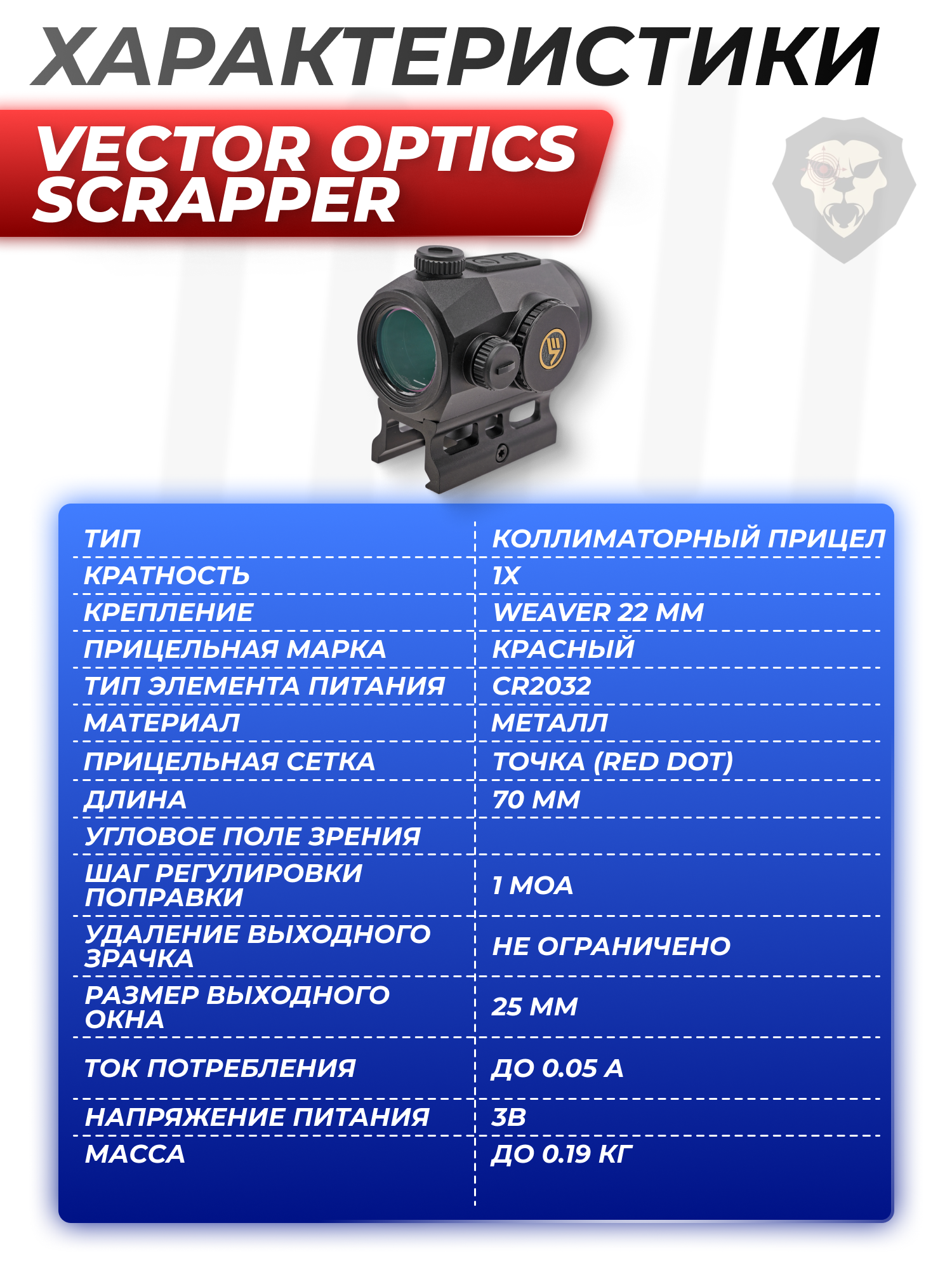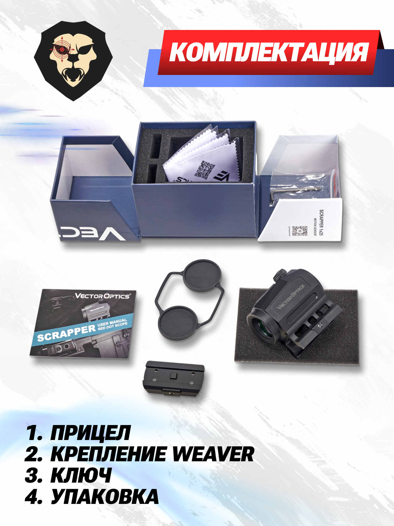 Информация о товаре "Коллиматорный прицел Vector Optics Scrapper 1x25 RD (Weaver, 2 MOA)" носит ознакомительный характер, и не является публичной офертой, определяемой положениями Статьи 437 Гражданского кодекса Российской Федерации, характеристики, внешний вид, цвет и комплектация могут быть изменены производителем без уведомления.