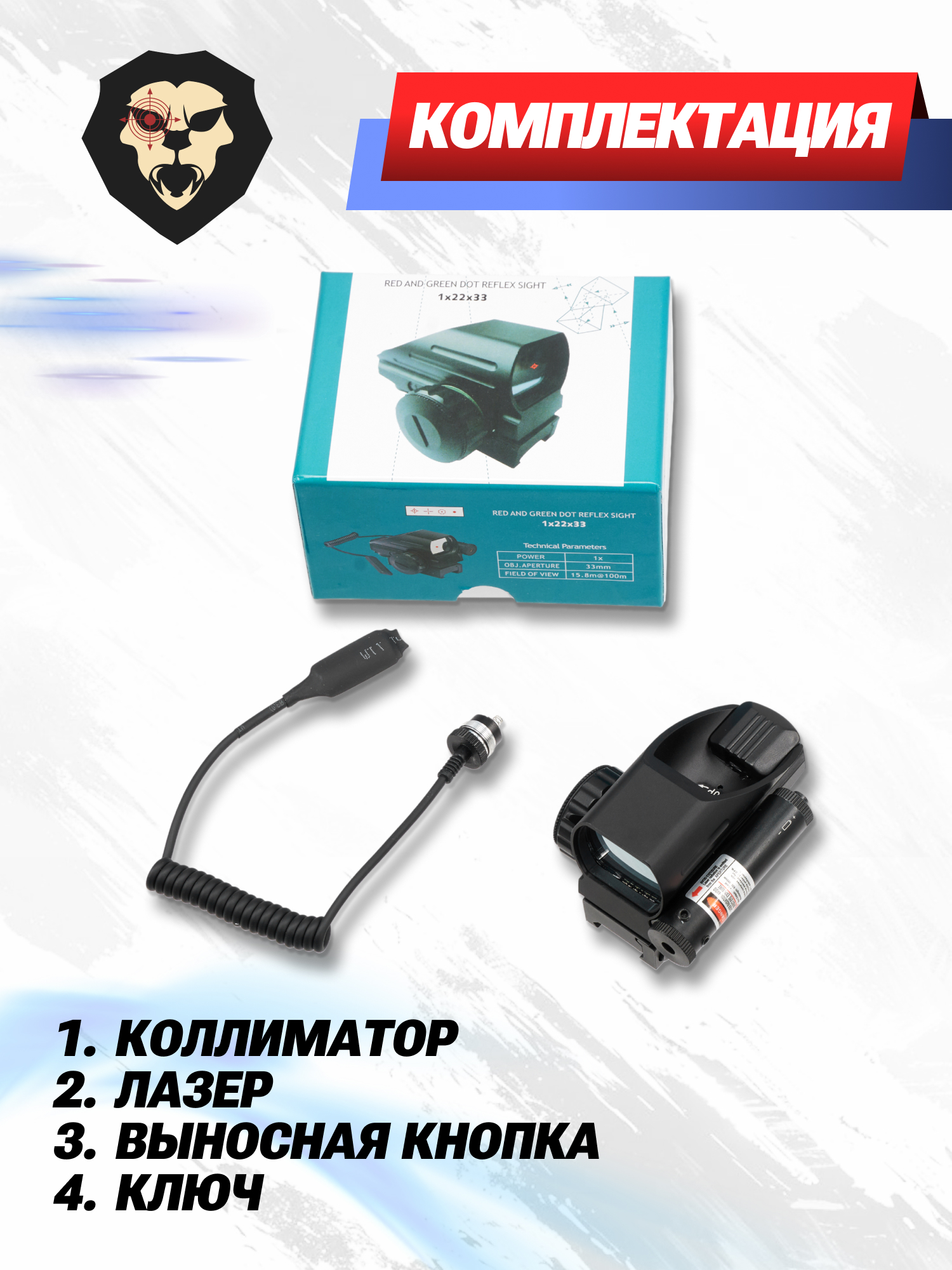 | Комплектация | Коллиматор, лазер, выносная кнопка, ключ, батарея CR2032 - 1 шт, батарея AG13 - 3 шт, краткая документация, упаковка |