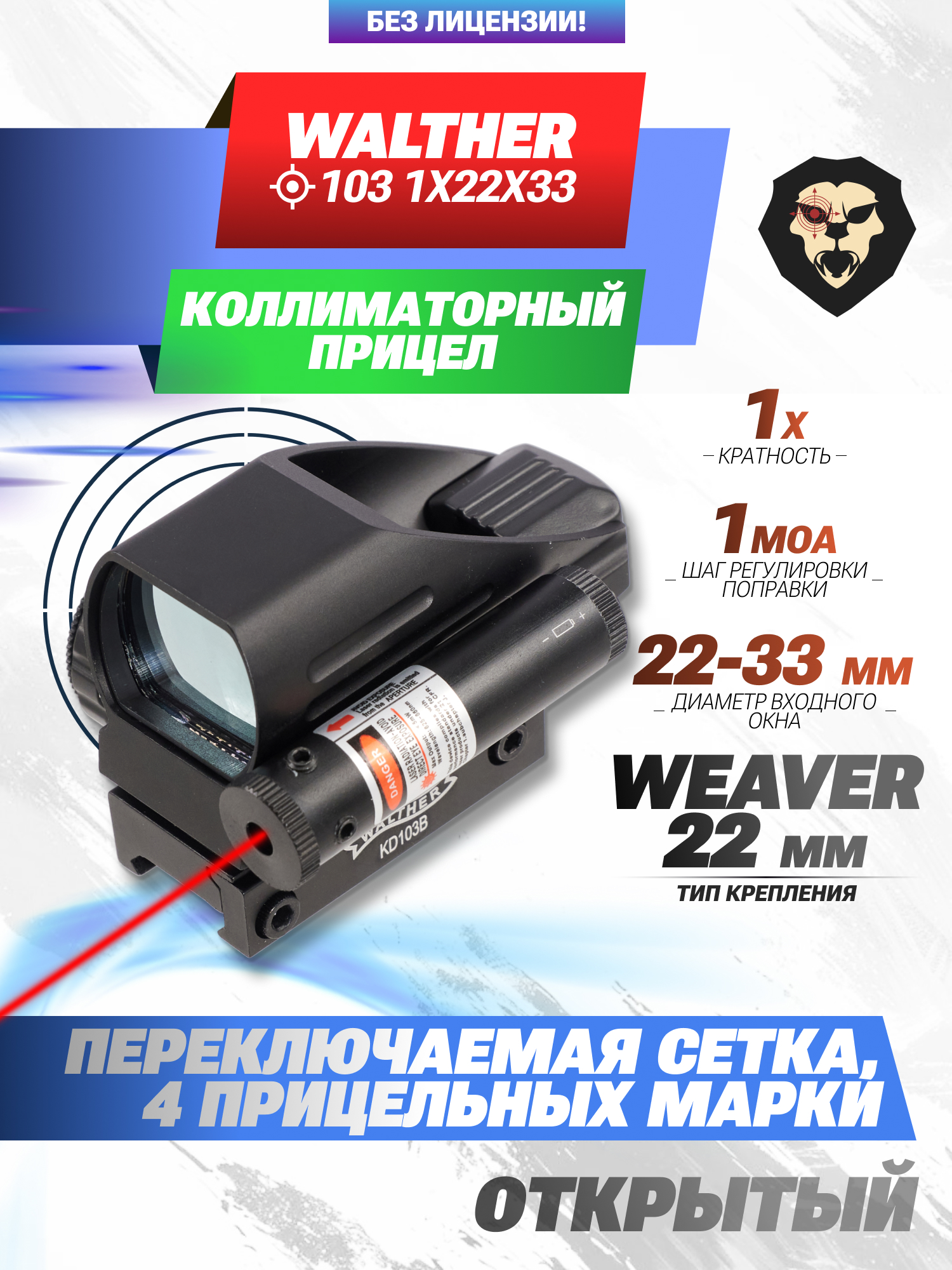 Коллиматорный прицел Walther 103 1x22x33 (BH-KWL02, ЛЦУ, Weaver) купить в интернет-магазине Popadiv10.