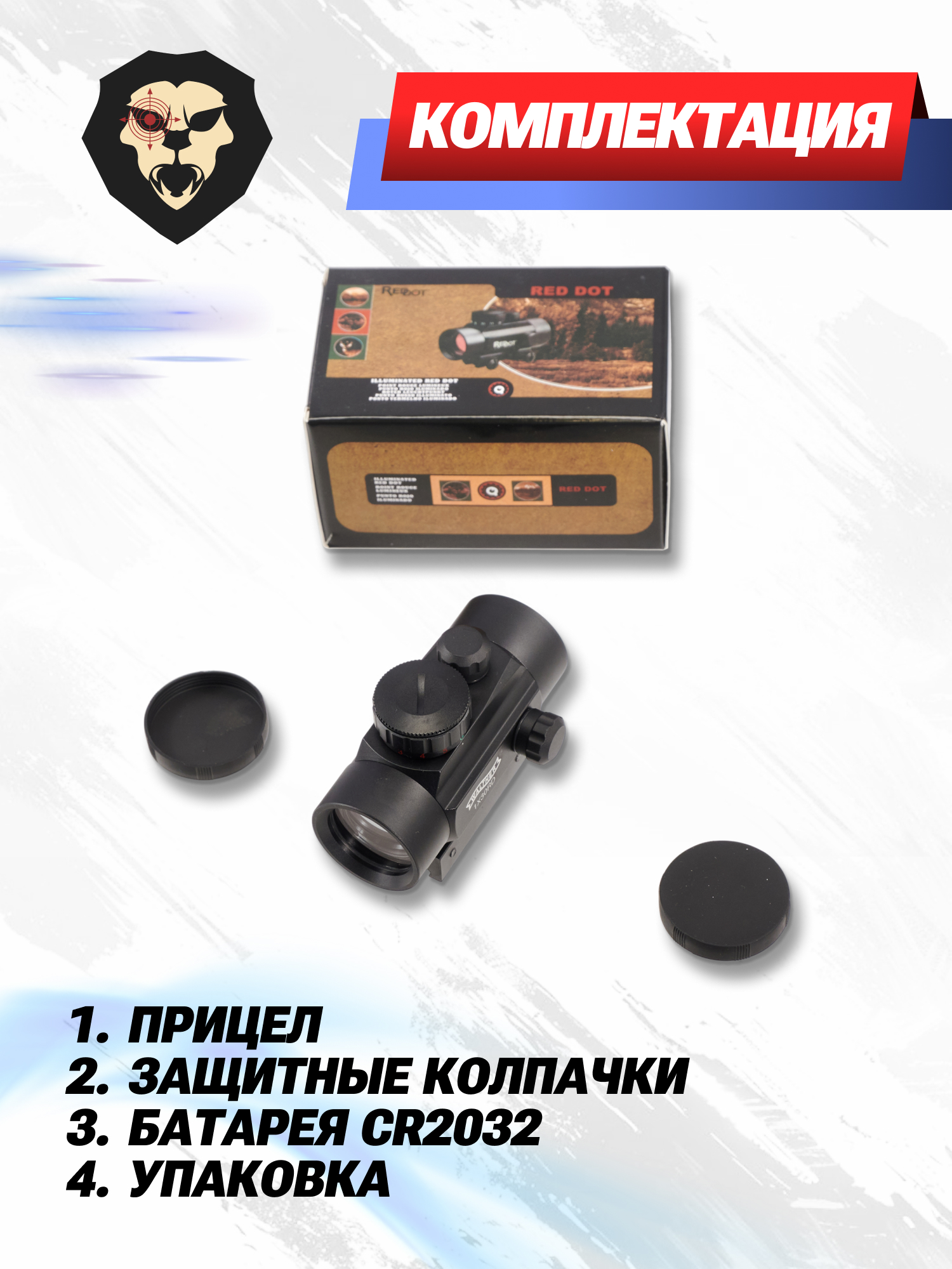 | Комплектация | Коллиматор, батарея CR2032, краткая документация, упаковка |
