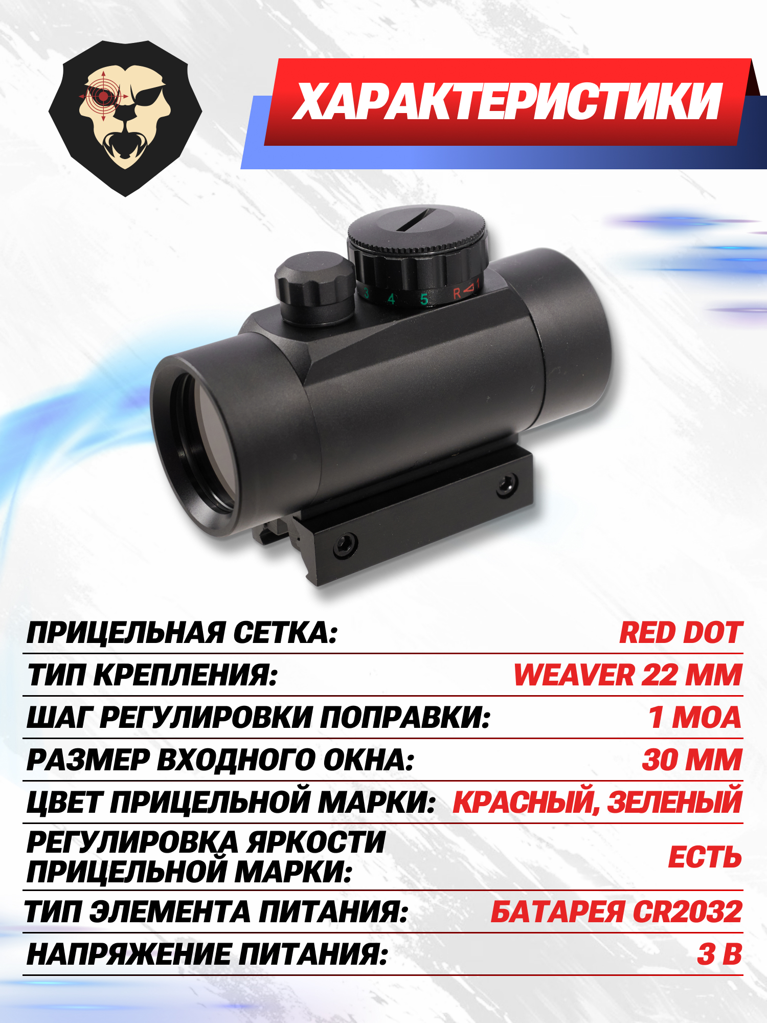 | Тип крепления | Weaver 22 мм |