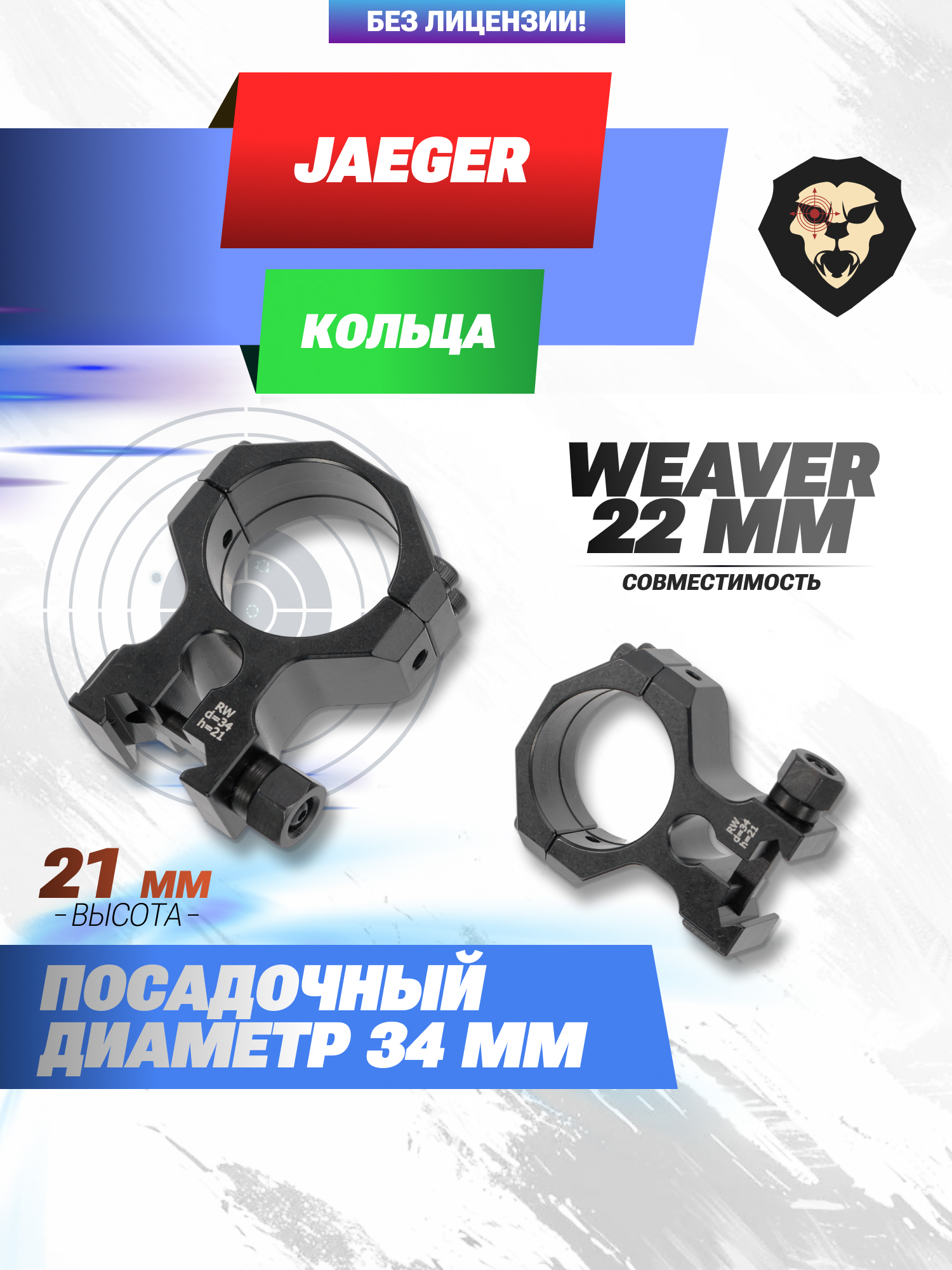 Кольца Jaeger 34 мм (РОК, Weaver, высокие 21 мм) купить в интернет-магазине Popadiv10.