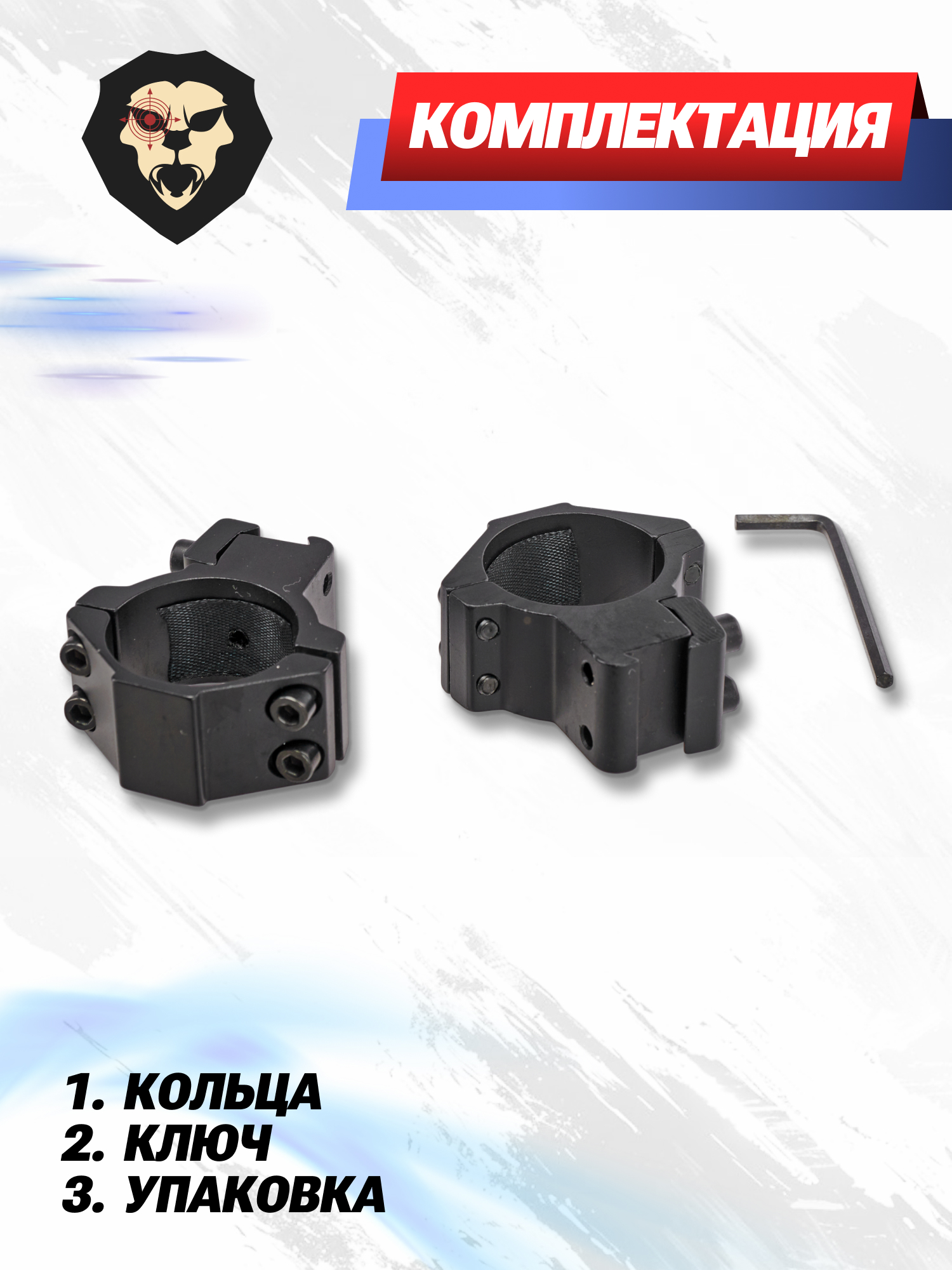 | Комплектация | Кольца, винты крепления, шестигранник, упаковка |