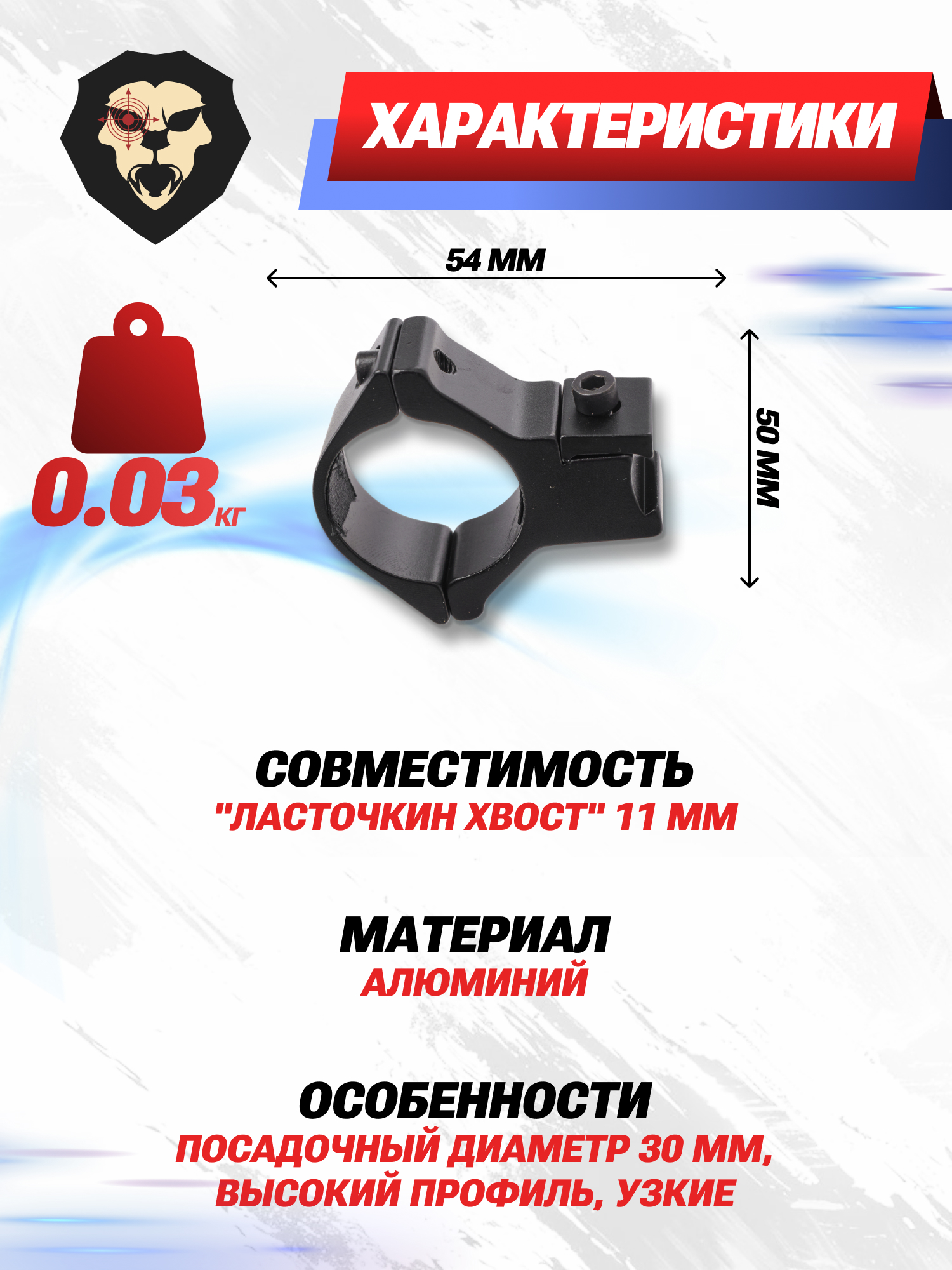 Крепятся кольца на Ласточкин хвост 11 мм. Это помогает раскрыть потенциал ППП пневматики и устаревших огнестрельных винтовок. Вместе с этим высокая ножка крепления допускает монтаж приборов с расширенным объективом.