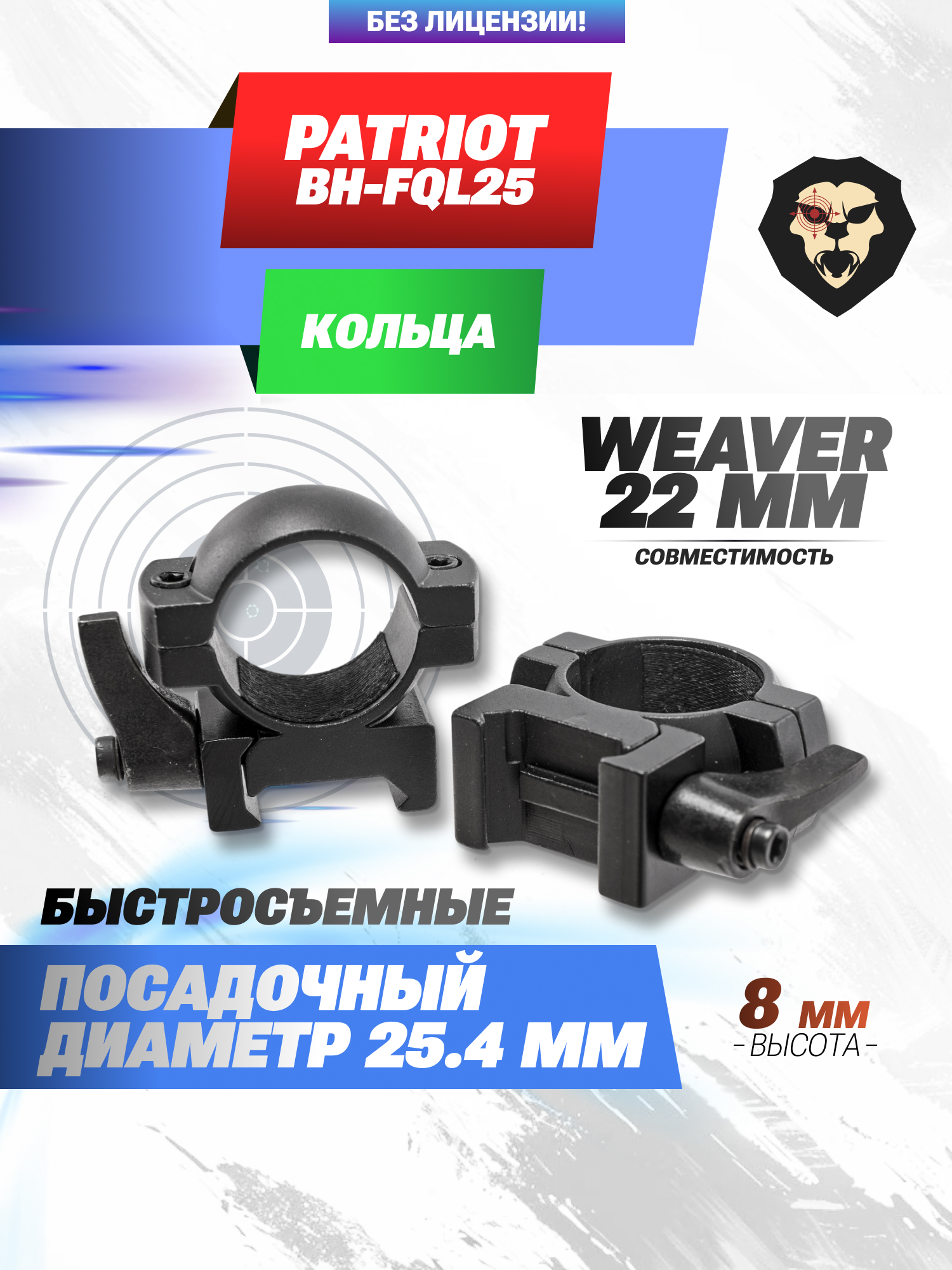 Кольца Patriot BH-FQL25 (Weaver, 25.4 мм, быстросъемные, низкие 8 мм) купить в интернет-магазине Popadiv10.