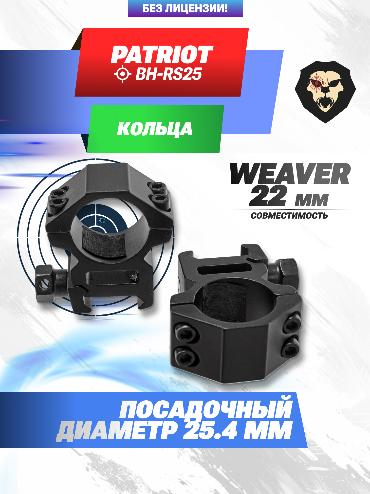 Рассматриваемые кольца Patriot BH-RS25 выпускаются под рельсовую планку образца Weaver или Picatinny 22 миллиметра. Отличительной особенностью этой модели выступает модификация с пониженным профилем в 1.4 сантиметра, что позволит оснастить оружие прицелом с допустимым диаметром выходной линзы в 53 миллиметра. Также стоит отметить, что ширина центральной части оптических приспособлений не должна превышать 25.4 миллиметра или 1 дюйм.