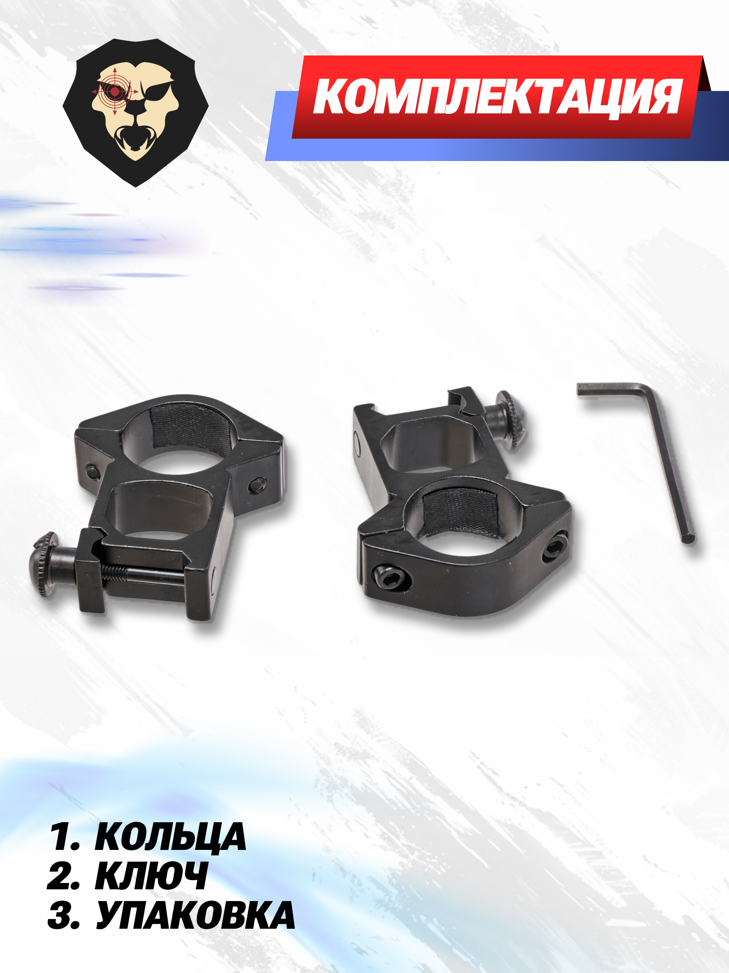 | Комплектация | Кольца, винты крепления, шестигранник, упаковка |