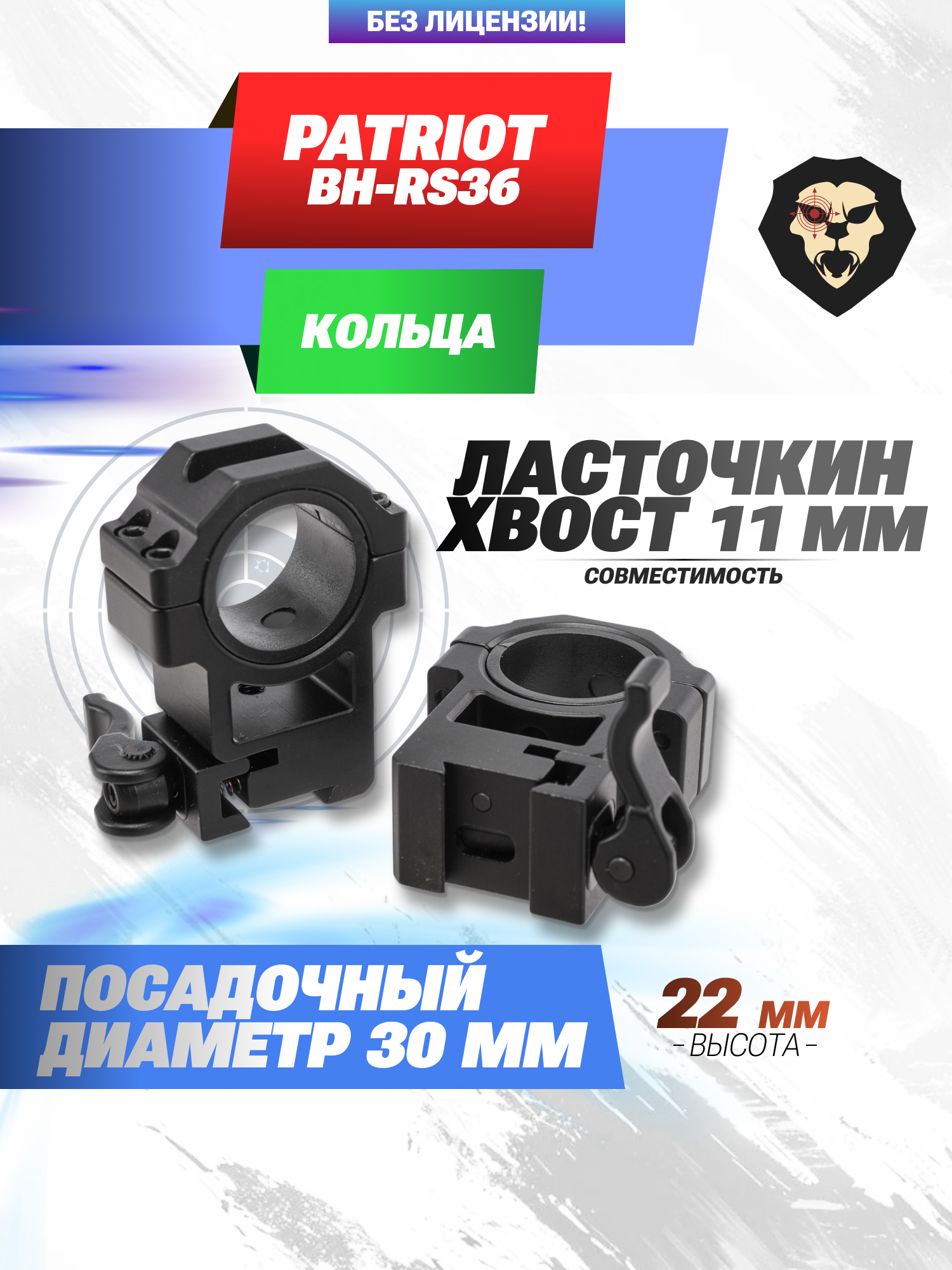 Производитель Patriot при обновлении линейки монтажных экземпляров выпустил модели с наименованием BH-RS36. Эти элементы совместимы с рельсовыми направляющими «Ласточкин хвост» у которых ширина рабочей части равна 11 миллиметров, также рассматриваемые образцы дают зафиксировать прицелы с корпусом в цилиндрической форме и диаметром 3 сантиметра. Стоит отметить, что за счет повышенной посадки в 22 мм допускается установка устройств с шириной объектива в 74 мм.