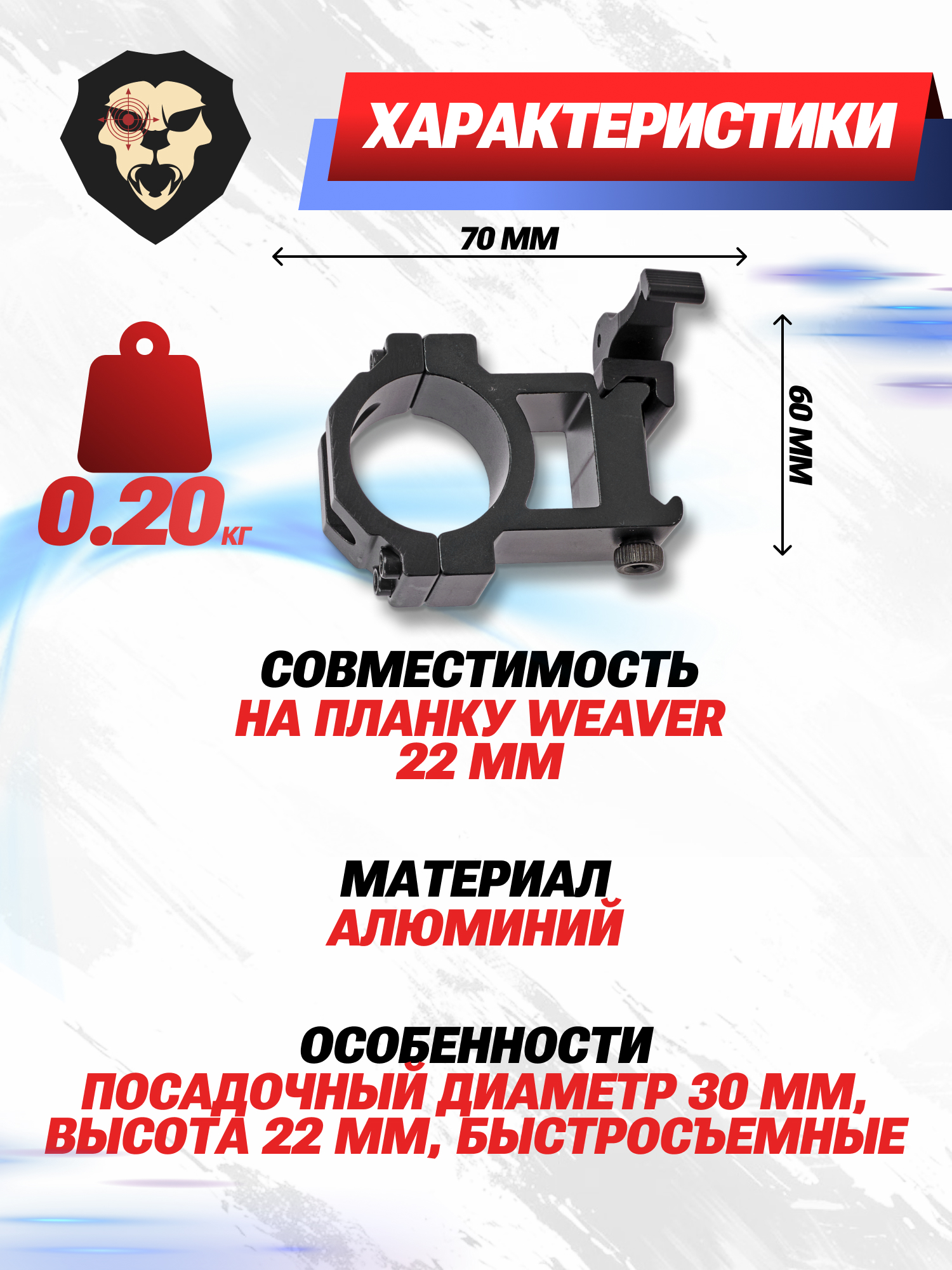 Кольца Patriot BH-RS40 (Weaver, 30 мм, быстросъемные, высокие 22 мм) купить в интернет-магазине Popadiv10.