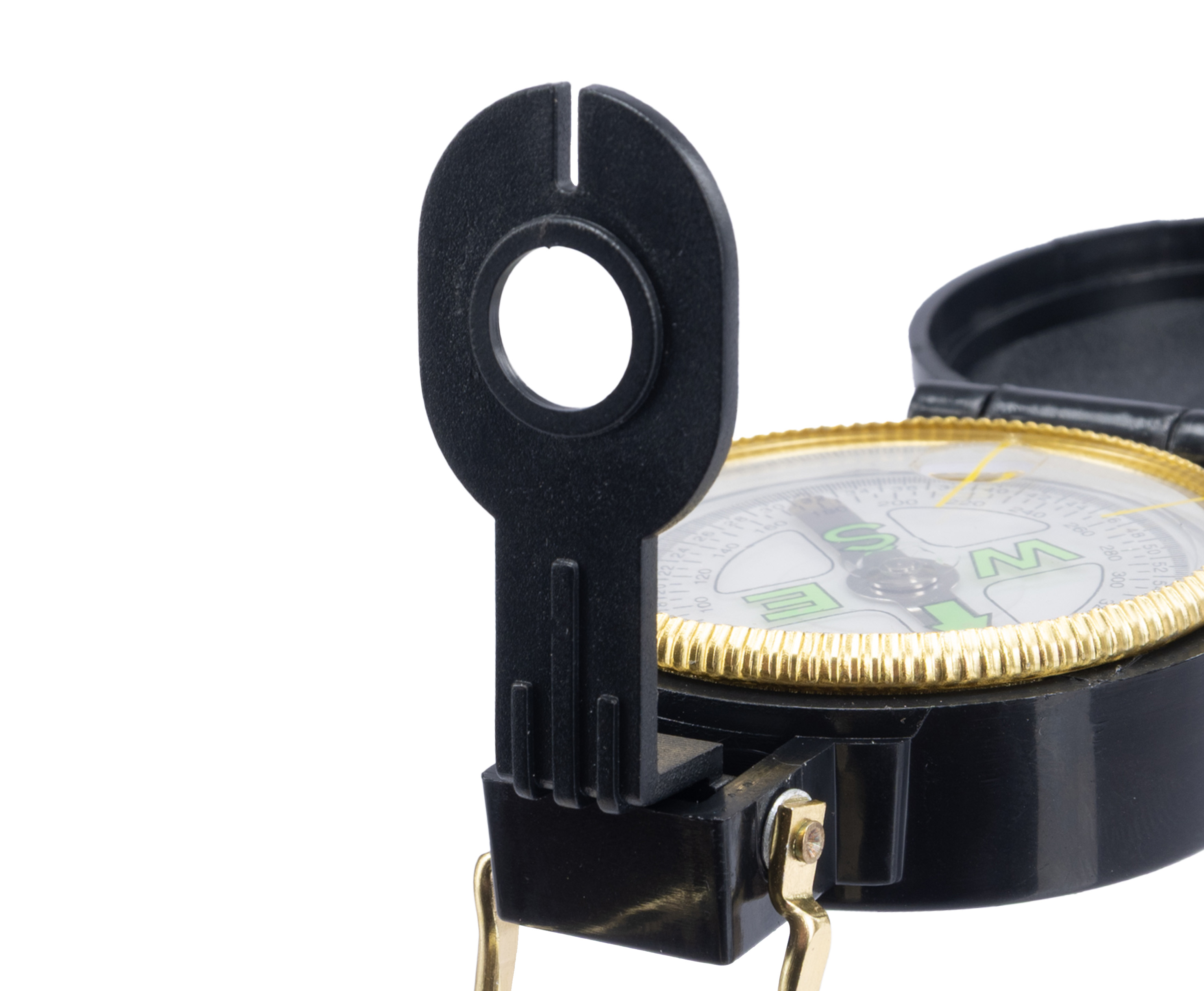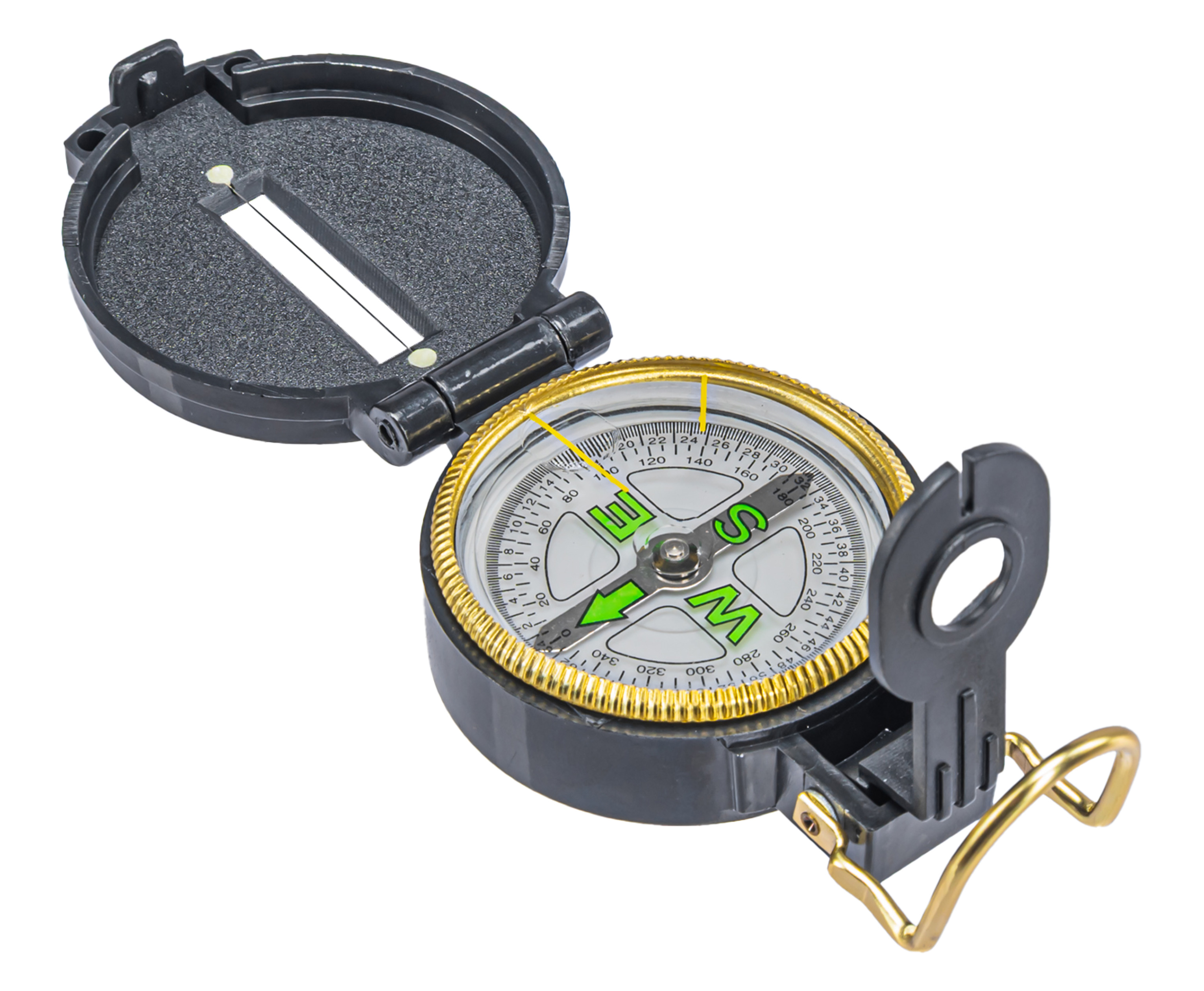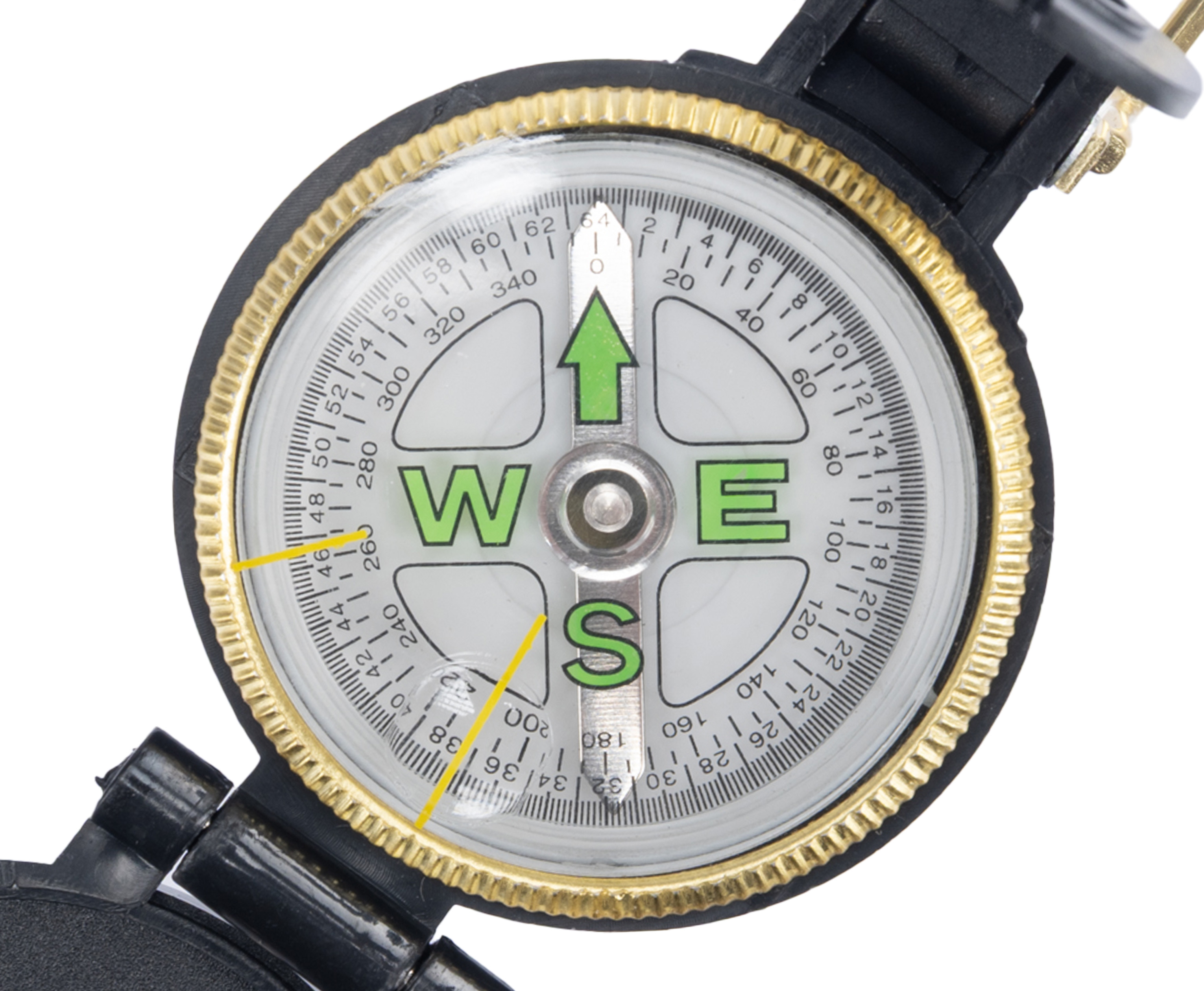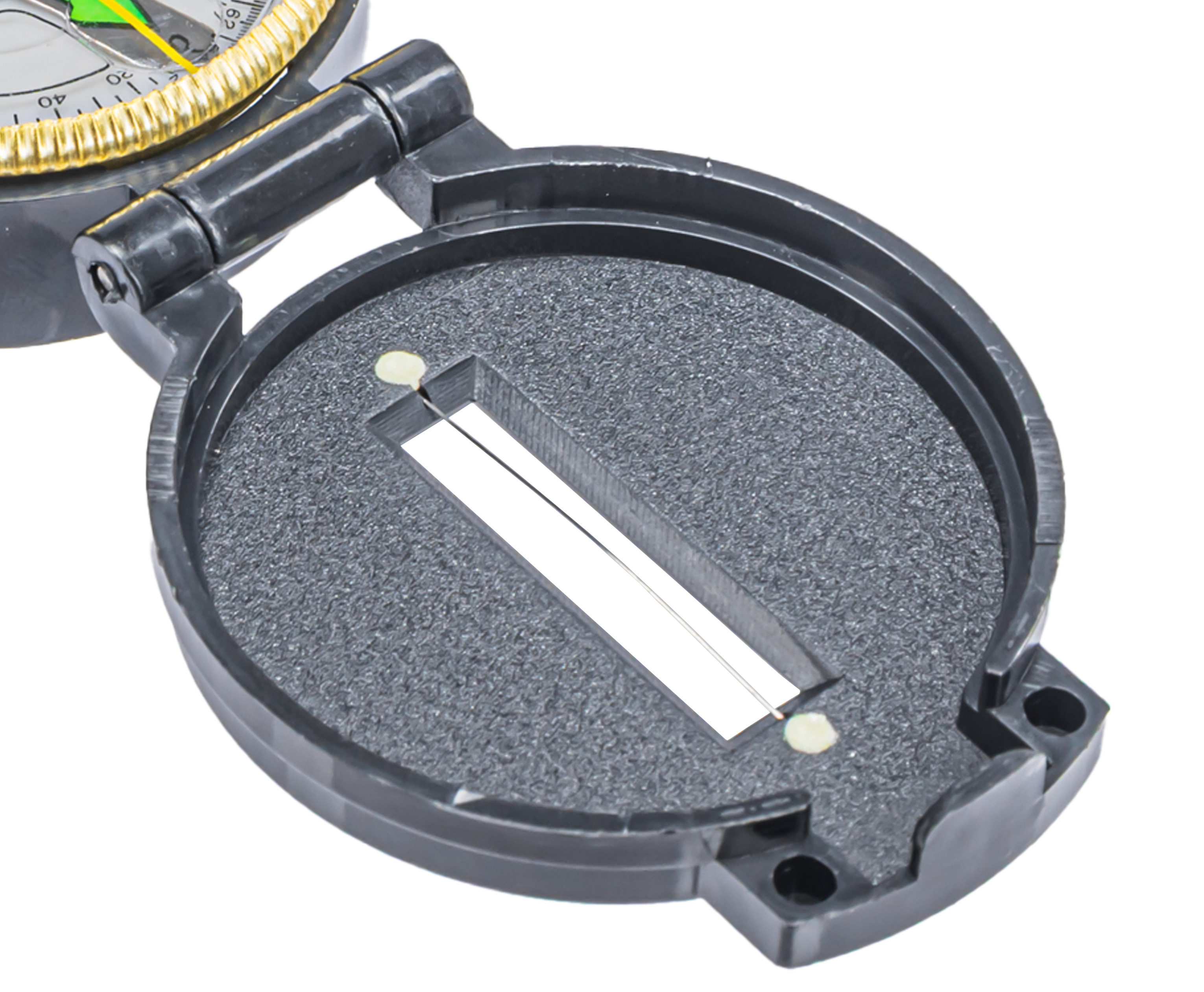 Компас туристический отличается повышенной скоростью стабилизации светящейся магнитной стрелки. В защитной крышке изделия присутствует отверстие со специальной прицельной нитью. Цена деления в рассматриваемом приспособлении – 5 градусов.