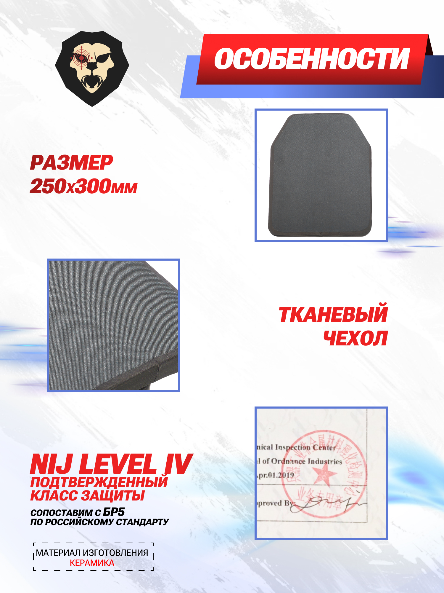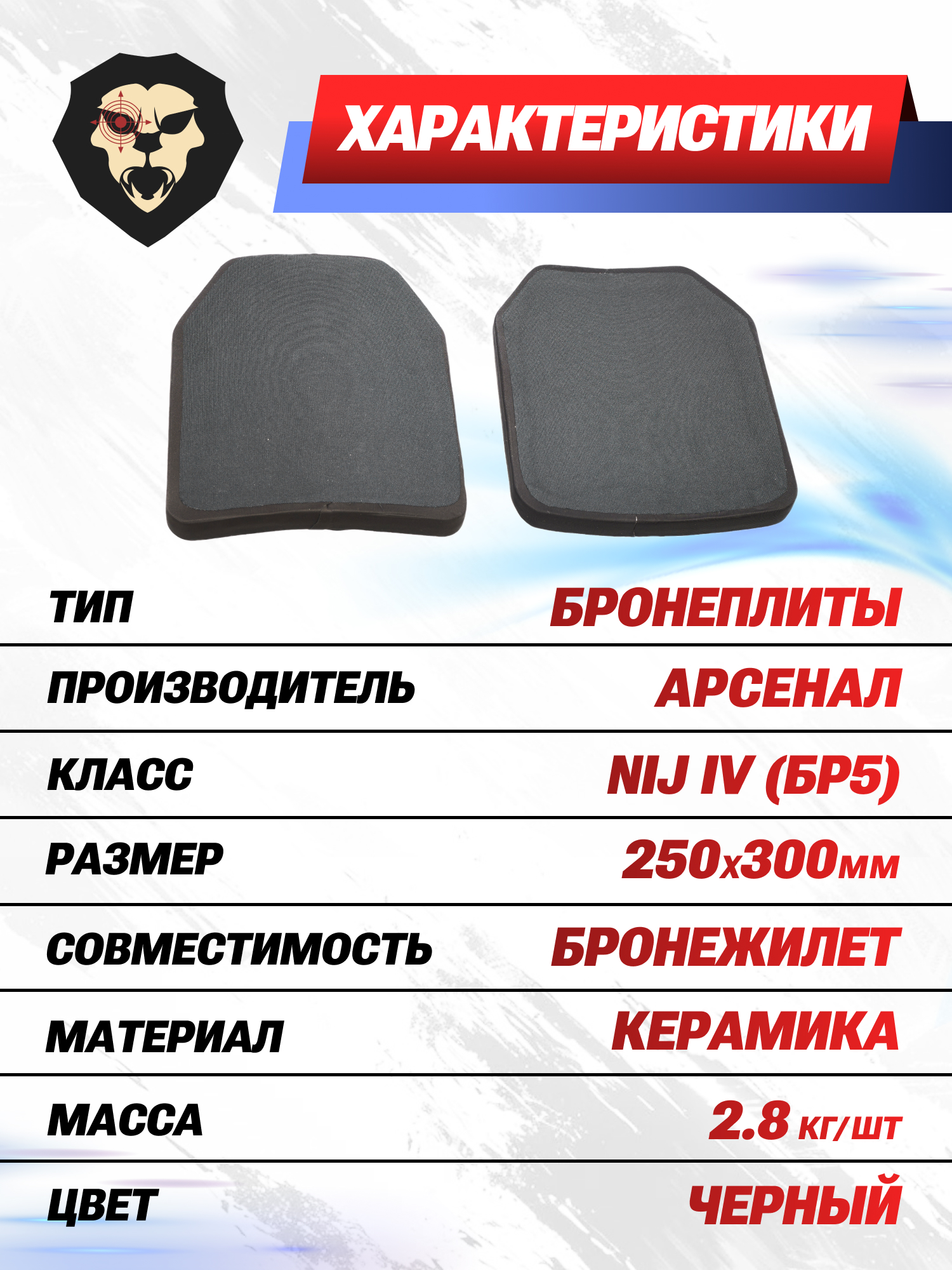 | Комплектация | Бронеплиты - 2 шт, упаковка |